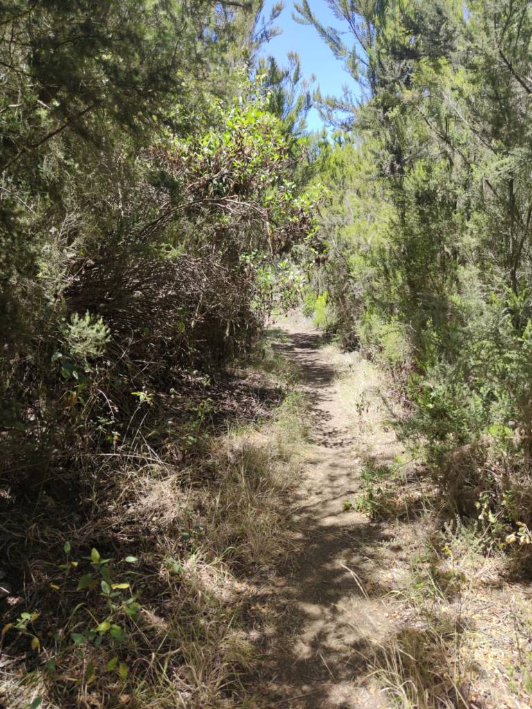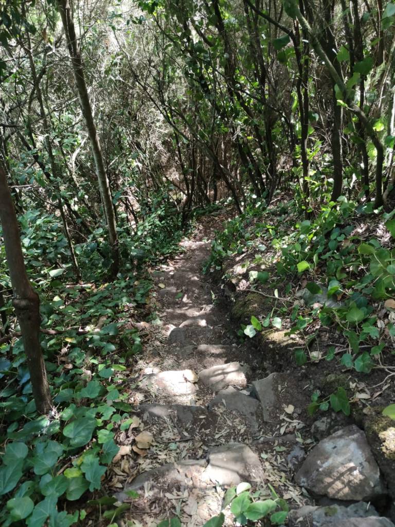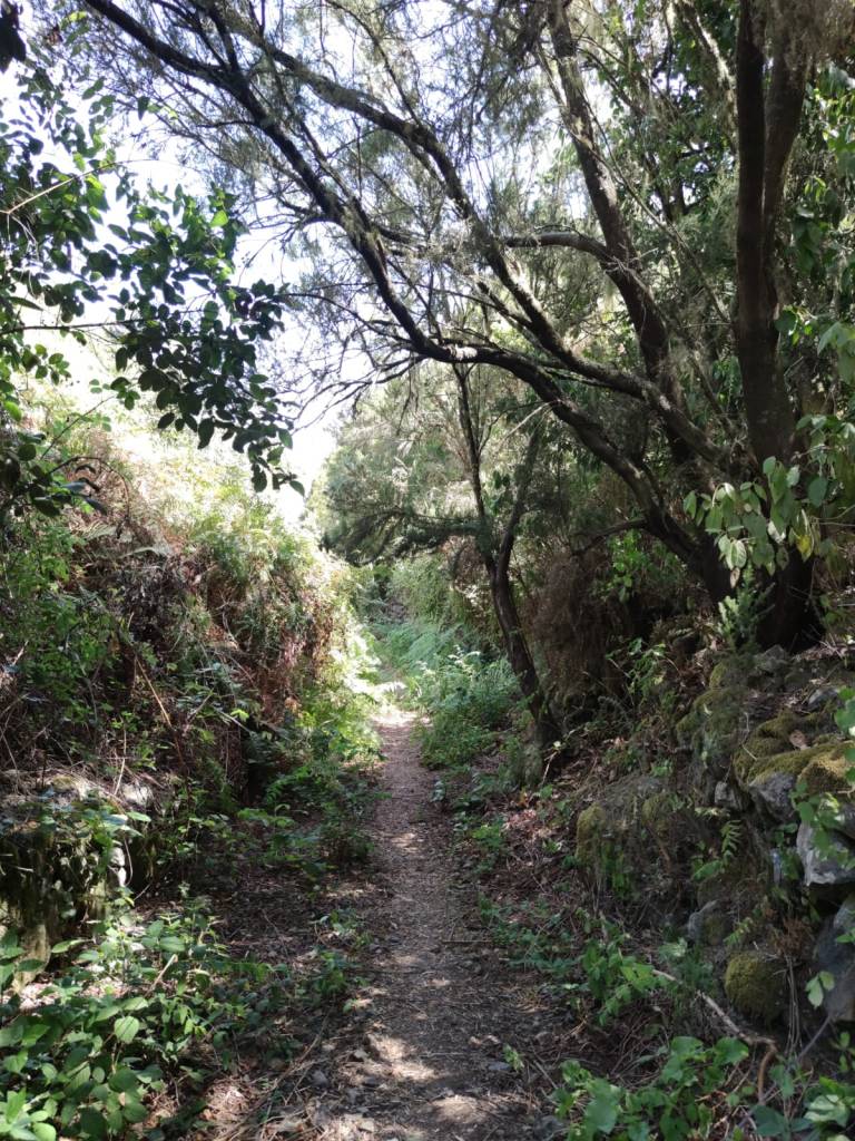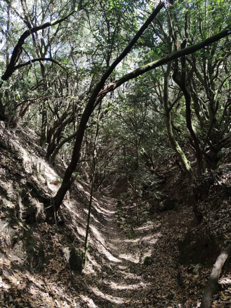 Descenderemos por el barranco El Guirre en dirección del núcleo Ruigomez, en la que nos encontraremos antiguos usos y aprovechamiento del agua. Fuentes, galerías y cabocos ( vocablo prehispánico que significa cuenca, cueva o lugar cercado situados en barrancos y que por lo general mana agua) estarán en el camino a nuestro paso para conocer y hacernos una idea de como se conseguía el agua. Y aunque en este caso el sendero estaba bastante limpio, es una zona donde las zarzas lo pueden cubrir rápidamente, por lo que hay que tener en cuenta este dato.