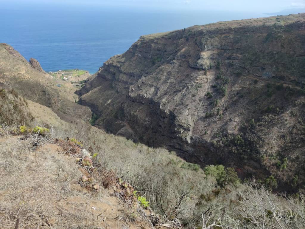 En la parte mas alta, encontramos el ultimo gran obstáculo que tenían que salvar. El Barranco Ruiz. Separación natural entre San Juan de La Rambla y Los Realejos. Una gran grieta que como obstáculo no me quiero ni imaginar en aquella época el sortearlo. Hoy en día alberga uno de los sitios de interés científico mas importante de la isla con un estupendo bosque termófilo. Sortear este accidente geográfico, ni era fácil antes, y casi no lo es tampoco ahora. Pero hoy gracias a los senderos que se conservan de aquel entonces se puede atravesar para llegar a Icod El Alto.