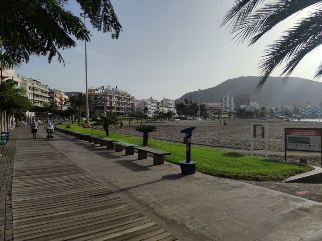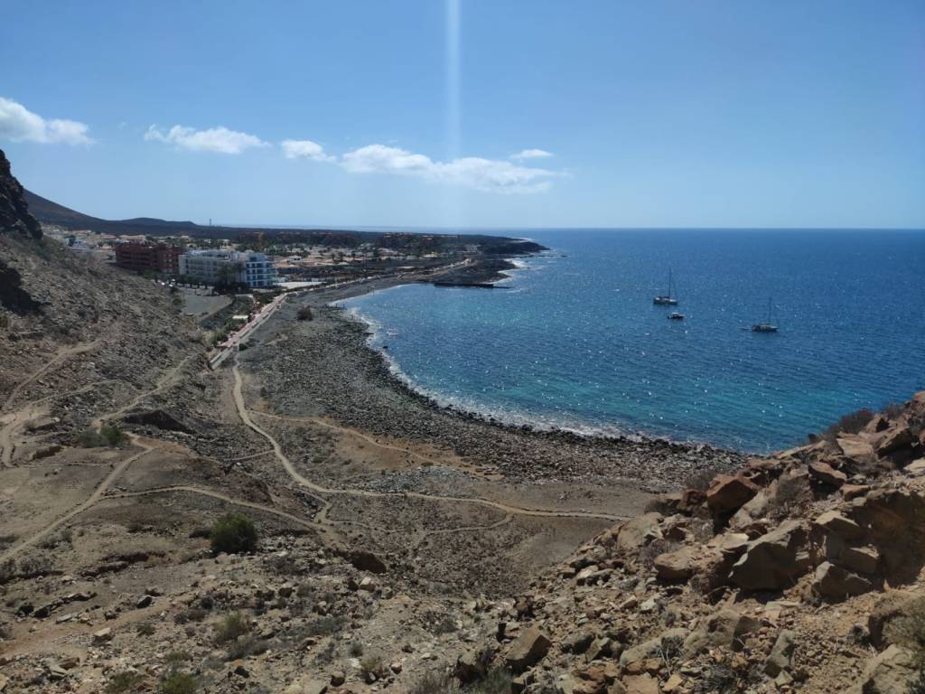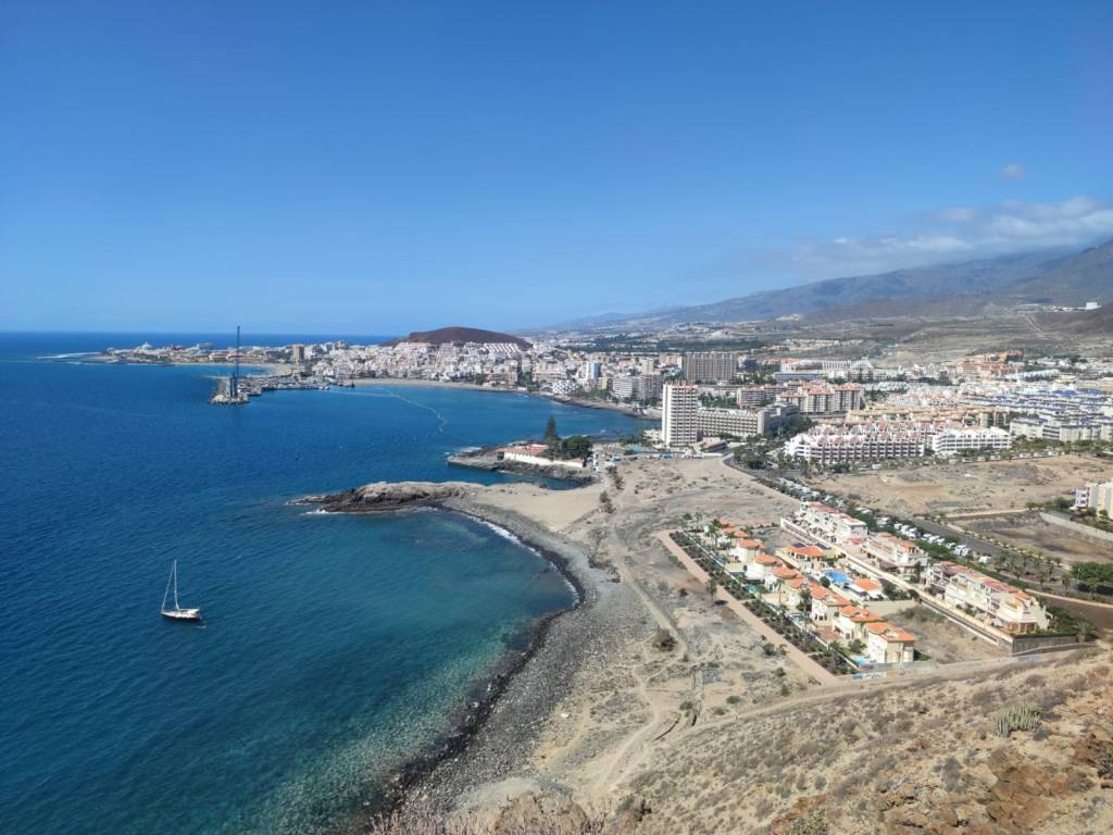 Esta nueva etapa es casi prácticamente urbana. Salimos desde Los Cristianos y por su paseo marítimo iremos caminando junto al mar en un recorrido que nos llevará por las principales playas del sur de la isla. Junto a hoteles, apartamentos, tiendas y un sinfín de negocios que han florecido para el turista siempre frente al mar. Playas como Las Vistas en Los Cristianos, Playa del Camisón en las Américas, Torviscas en Puerto Colón, Fañabe, Bahía del Duque… estarán a nuestro paso en esta etapa por este inmenso paseo marítimo de casi 10km de largo. Solamente cuando llegamos a La Caleta de Adeje el paisaje cambia totalmente. El hormigón, asfalto y grandes construcciones desembocan en este pequeño pueblito de pescadores que pese al paso del tiempo ha sabido mantener su costa en perfecta armonía con el paisaje.