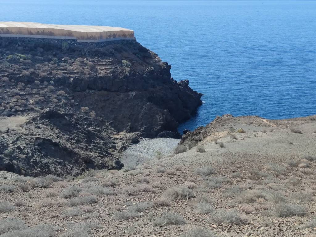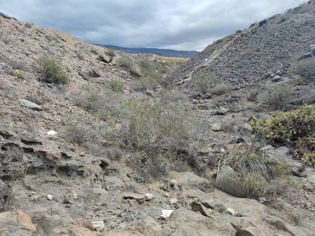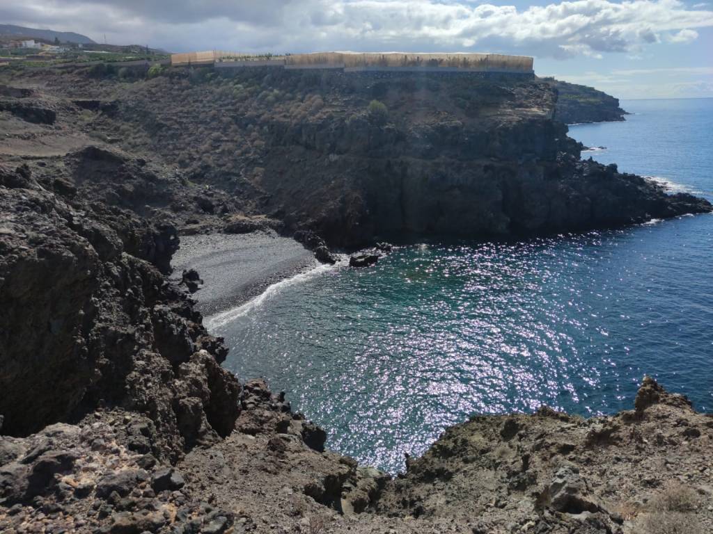 Fincas que además están rodeadas de basura, escombros de todo tipo que nos ofrecen una realidad, la que también hay partes de costa que están muy pero que muy degradadas. Aunque logramos pasar por la primera de las grandes fincas de este cultivo, se hace bastante peligroso por lo expuesto al acantilado por el que tenemos que caminar. Tal es el tiempo que nos lleva en pasar, encontrar un camino seguro y hacerlo lo más pegado a la costa que en varias ocasiones tenemos que rectificar nuestros pasos y volver hacia atrás. Una dura tarea a la que hay que sumar el cruce de las desembocaduras de grandes barrancos como el de Herques, que se hace casi imposible. A la altura del hotel Abama inevitablemente tenemos que desistir en nuestro intento y buscar la carretera, que aunque no nos lleva muy separados de la costa, nos obliga a hacer los últimos kilómetros por el asfalto hasta Playa San Juan.