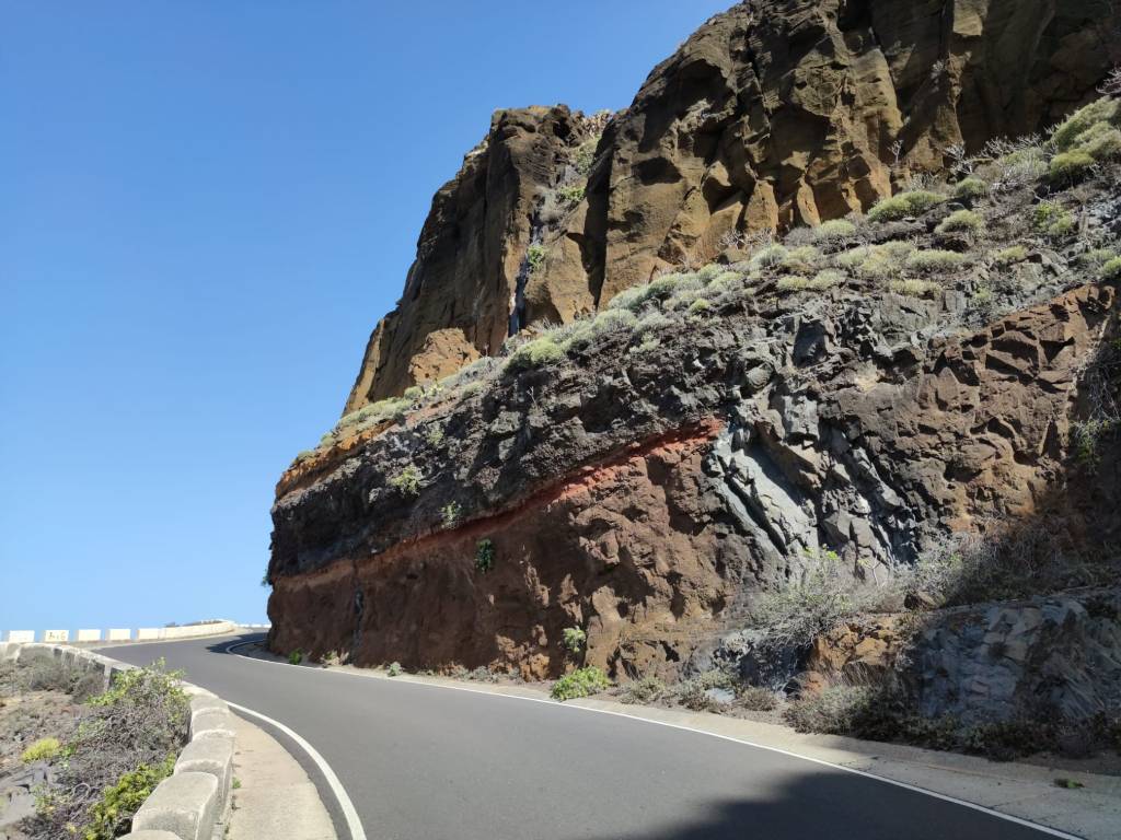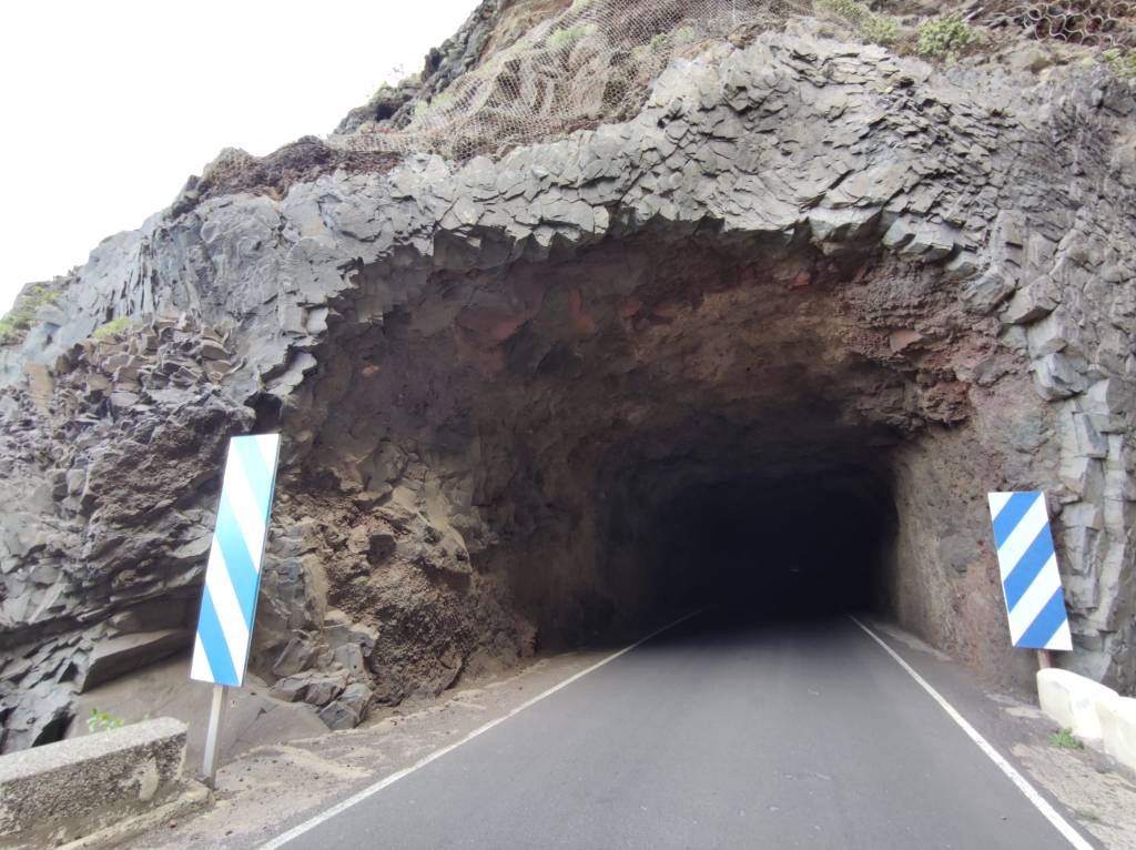 Hoy en día, salir de este lugar caminando es ardua tarea y solamente nos queda hacerlo por la carretera, si queremos hacerlo lo más pegado a la costa. Y esta carretera se construyó para poder comunicar esta parte de la Isla. Caminar por por esta vía es darse cuenta de los impresionantes acantilados que guardan celosamente este paraje. Paredes donde en épocas de lluvias se forman espectaculares chorros y esculpen el paisaje de una forma impresionante. Además de grandes diques y pitones. Solamente un túnel ganó la partida a esta casi inexpugnable muralla para poder cruzar y llevarnos hasta la Isla Baja.