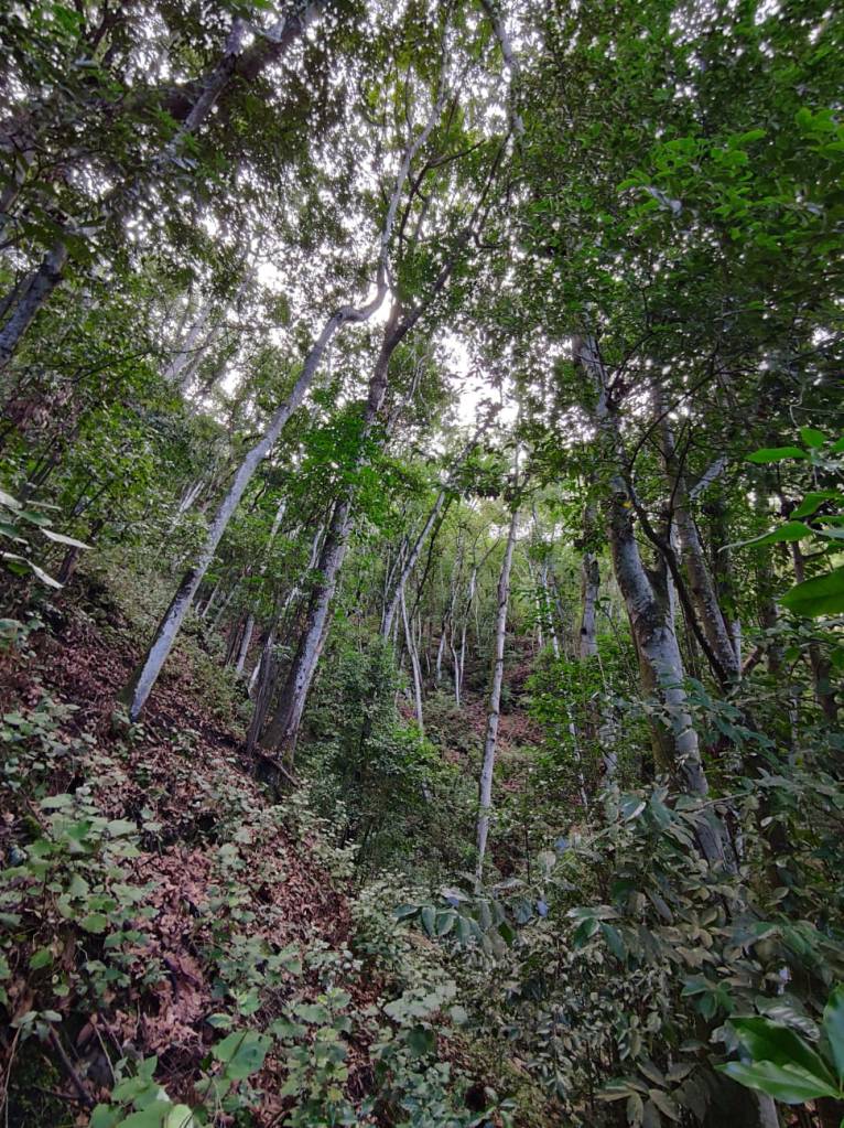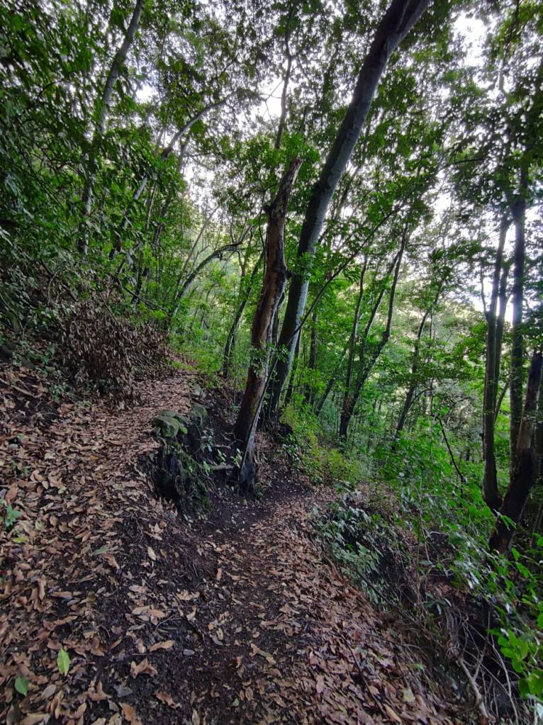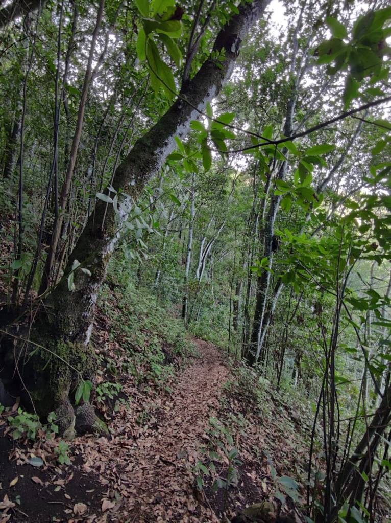 Nuestro sendero discurre por esas laderas escarpadas, casi verticales, y que debajo de la frondosidad de esos arboles, transitaremos por un sendero casi imposible que nos llevara hasta nuestro destino.