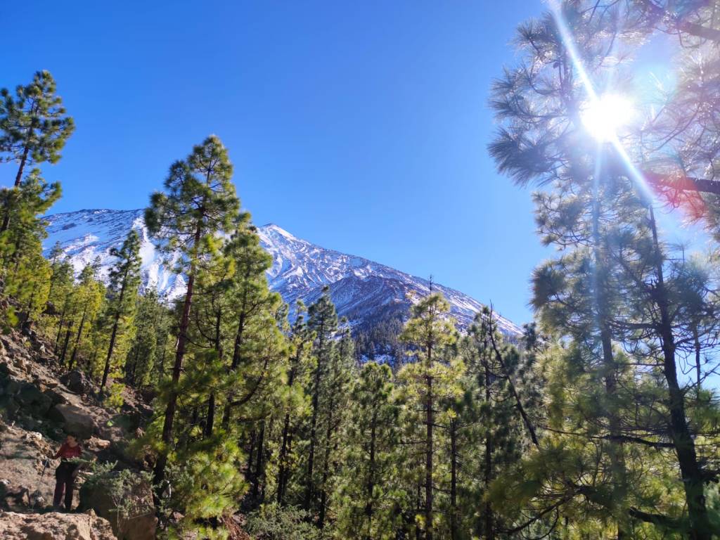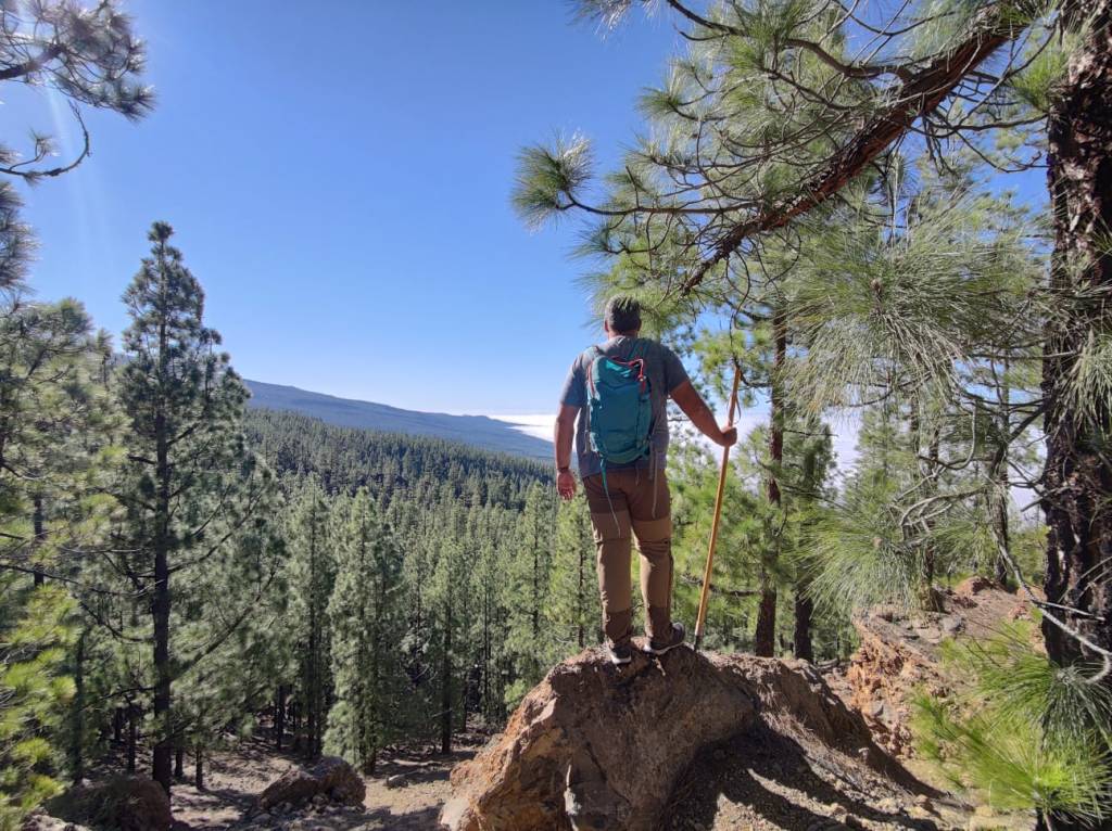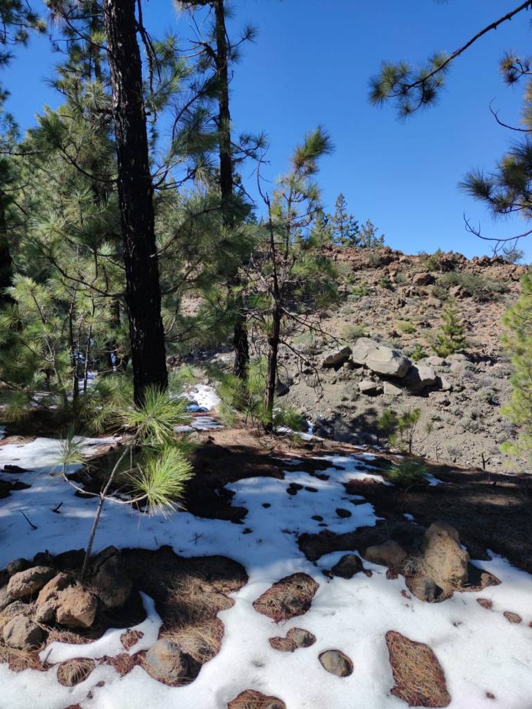Un gran esfuerzo hasta llegar a la parte más alta, donde el empinado sendero empieza a suavizarse en una llanura de pinos, y que poco a poco nos va a dejar ver entre sus ramas un Teide, majestuoso y sobrio, como aperitivo a las estupendas vistas que nos encontraremos más adelante.