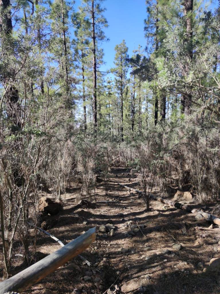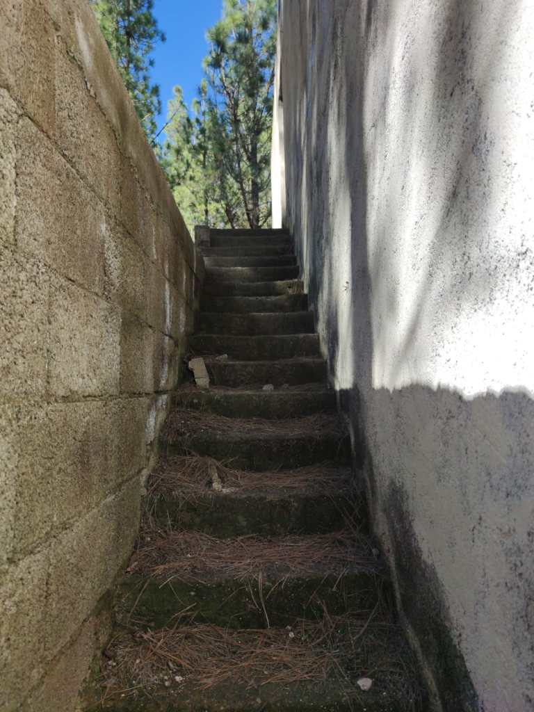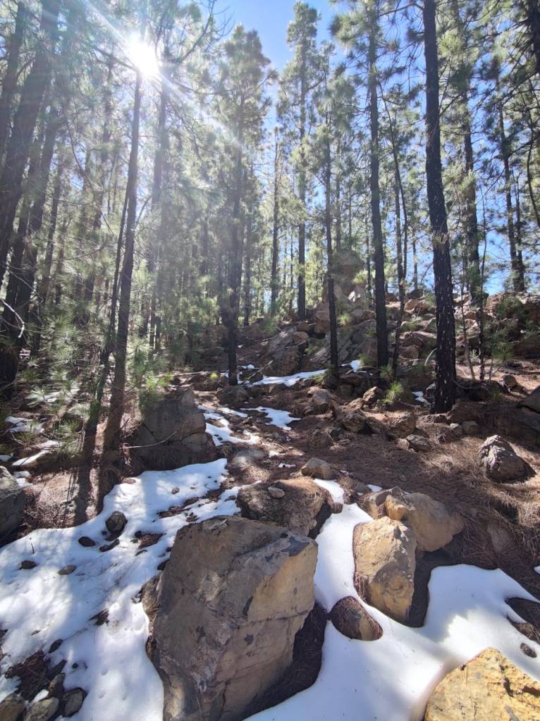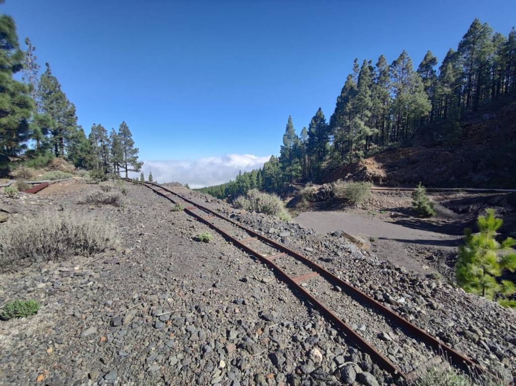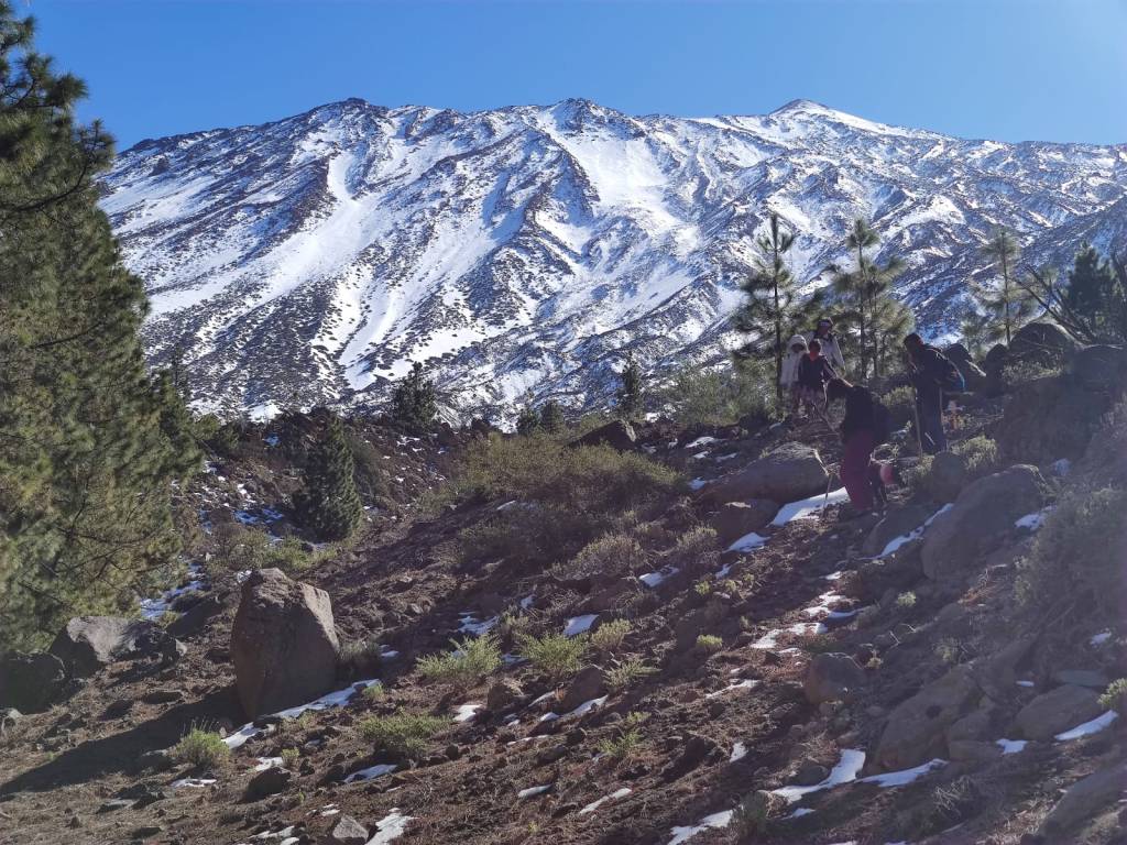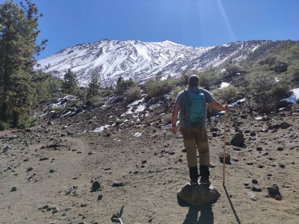 A partir de este lugar, empieza nuestro sendero propiamente dicho. Una continuada subida nos conduce entre pinos hacia la ladera de El Teide. Este sendero de accesión continua, cuenta con lugares de gran desnivel en los que nos tenemos que emplear a fondo para vencer la altitud. Senderos de piedra, antiguas trochas para desplazarse, todo ello entre pinos canarios, verdes copas y el sol adentrándose entre sus hojas.