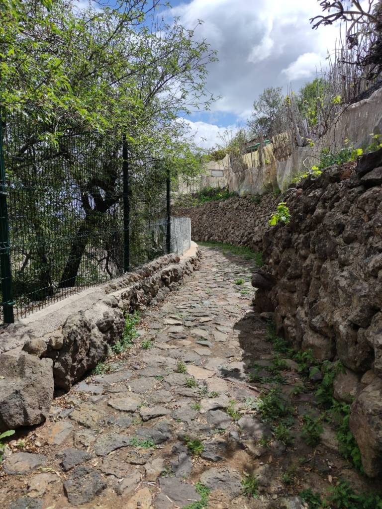 Siguiendo por la calle que nos lleva hasta La Cruz de Tea, vamos viendo las huertas de cultivos típicas del lugar, unas todavía en explotación y otras abandonadas. Las primeras «cruces de tea» van apareciendo a nuestro paso, marcándonos esos cruces de caminos de antaño.