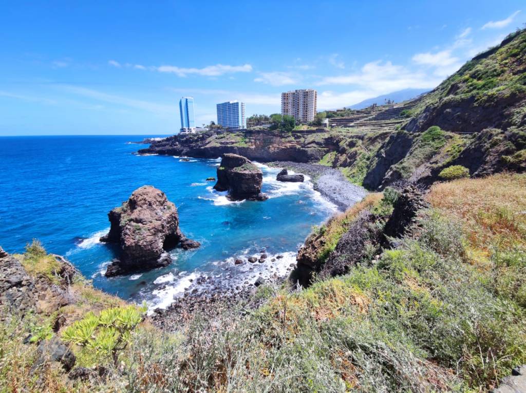 Por ultimo, y ya llegando casi al Puerto de la Cruz, y solamente, después de atravesar la urbanización de La Romántica nos queda un ultimo tramo de camino que discurrir, por la playa de Los Roques, con su Roque Chico y su Roque Grande que nos dan la bienvenida. A lo lejos un imponente edificio hotelero como lo es El Maritim nos indica sin duda alguna, la llegada a una de la zona turística por excelencia del norte de la Isla.