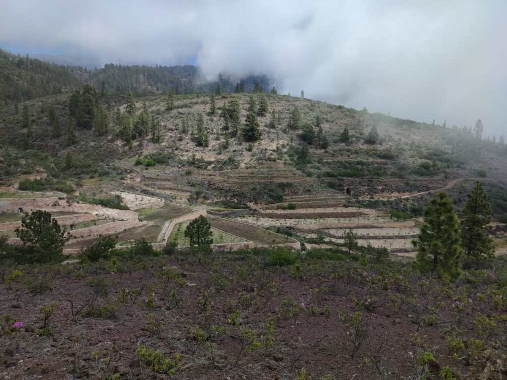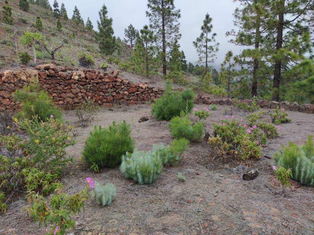 Las zonas que han sido deforestadas para su transformación en bancales permanecen en la actualidad ocupadas por cultivos, abandonados en su mayoría, como almendros, vid, higueras, tuneras, etcétera, o han sido colonizadas por comunidades naturales de sustitución de porte arbustivo como jarales, vinagrerales y margarzales, o bien por comunidades herbáceas autóctonas dominadas por especies como el cardo de medianías o el hinojo.