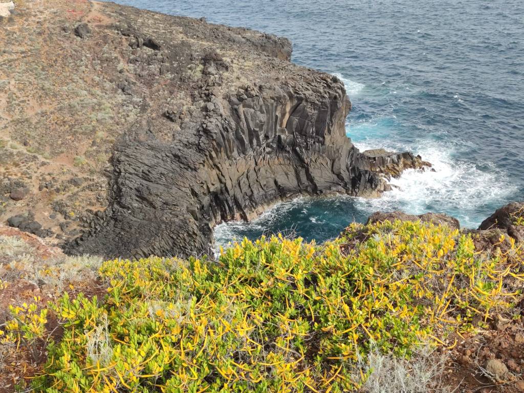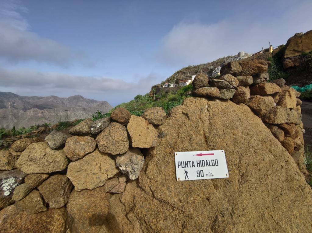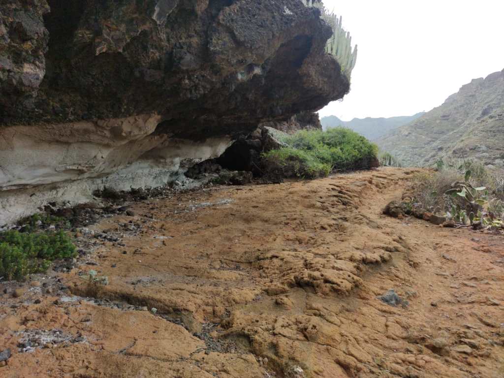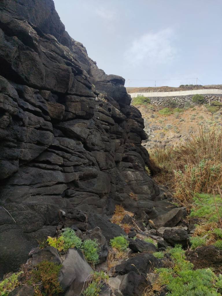 Desde Jover salimos en dirección Punta del Hidalgo. Un camino que pronto veremos interrumpidos por invernaderos y que nos obliga, como en otros lugares, a dar un rodeo. Ya de nuevo cerca del mar en la zona conocida como Milan, tenemos que cruzar un impresionante barranco. El barranco Agua de Dios es importante no solo por su carácter natural, sino que además es un importante lugar arqueológico por la cantidad de restos aborígenes que se han encontrado en esta zona.