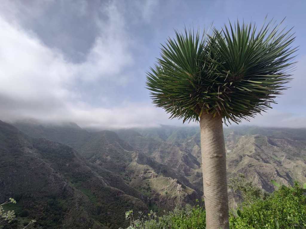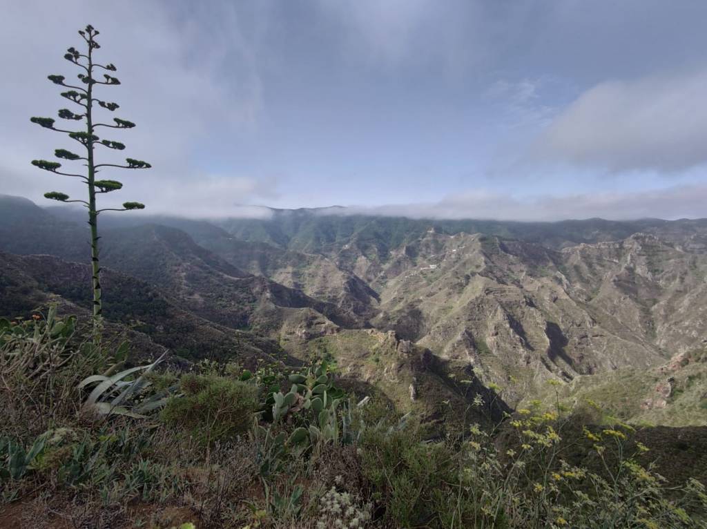 Nuestro camino empieza nada más cruzar el cauce del barranco del Río. Un cauce que normalmente está seco, pero que en los meses de lluvias se convierte en un barranco que recoge muchísima agua. Los primeros metros de este sendero nos llevan a contemplar el famoso Roque dos hermanos desde su base. Una formación que cuanto más te acercas, más te impresiona, por su forma tan característica. A partir de este momento, y paralelos al barranco el Río comienza una subida de unos 5 km en los que en algunos tramos hay que emplearse a fondo.