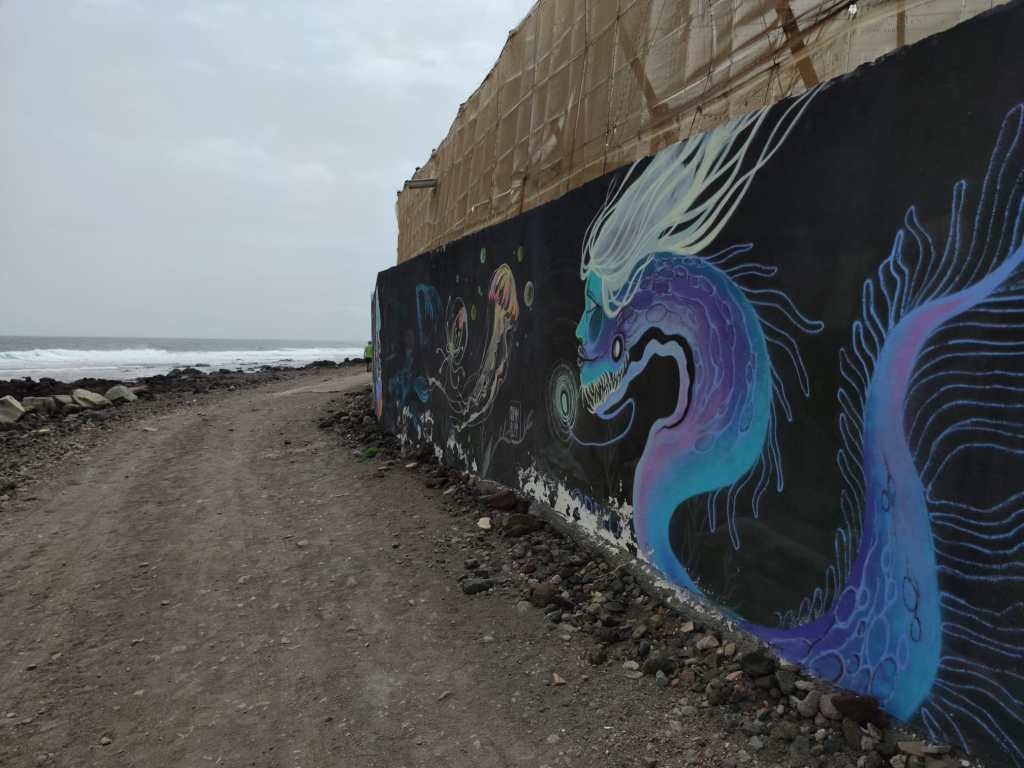 Una vez salvado este accidente natural, volvemos a adentrarnos entre invernaderos que nos obliga a retroceder y separarnos de la costa. Caminando por asfalto y callejeando llegamos a Bajamar donde en el barranco de la Goleta nos encontramos un magnífico puente para cruzar de un lado a otro y que nos simplifica muchísimo nuestro camino.