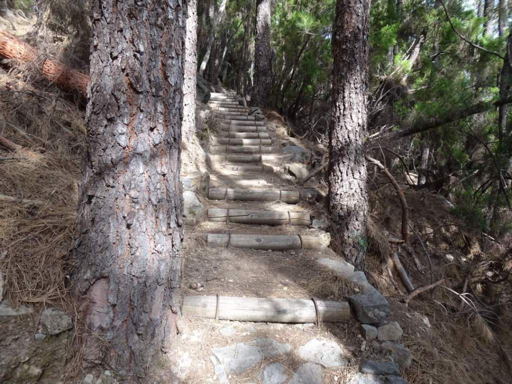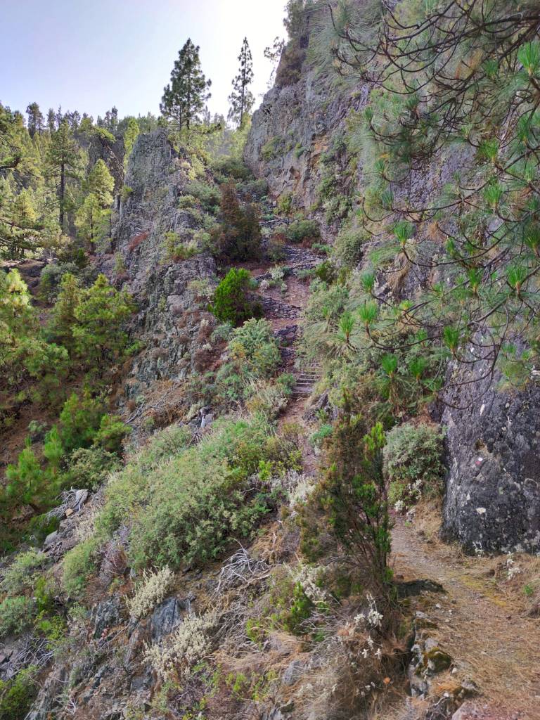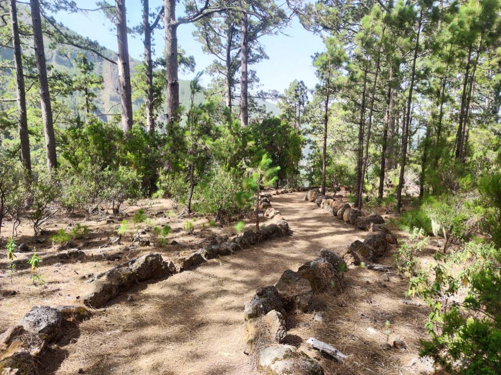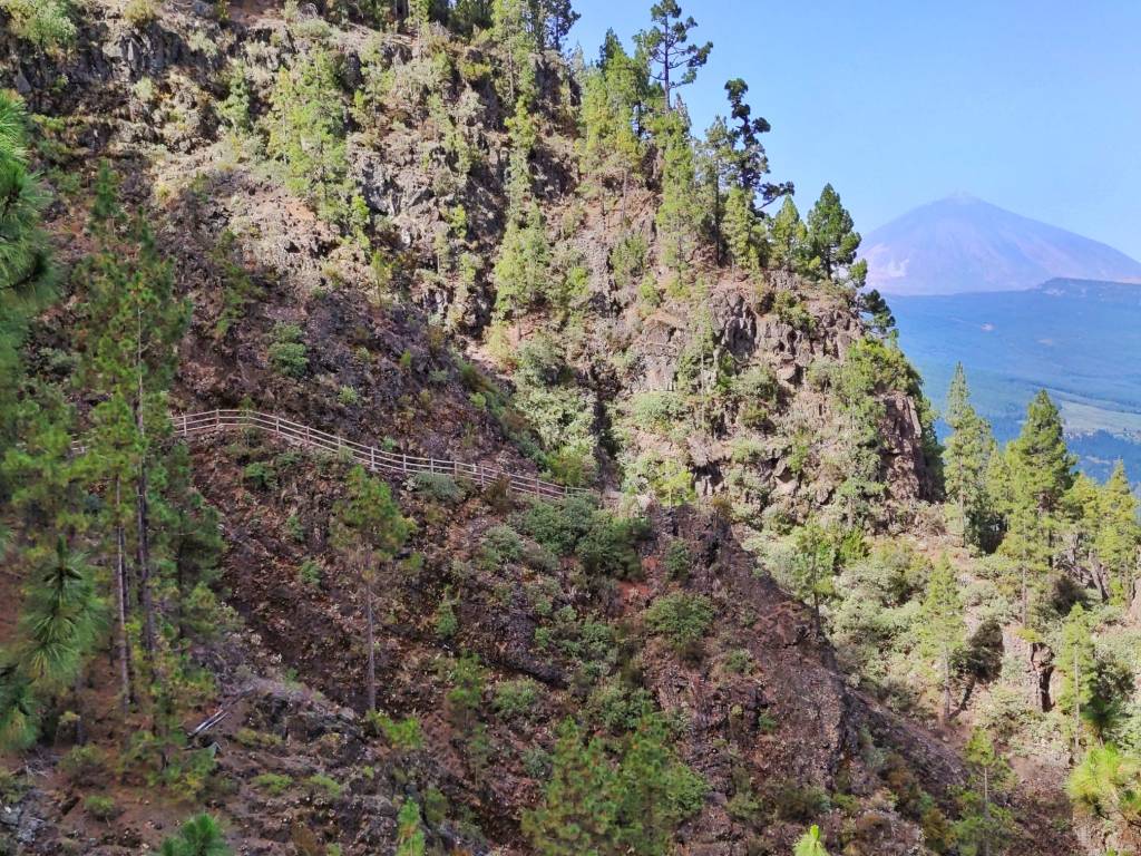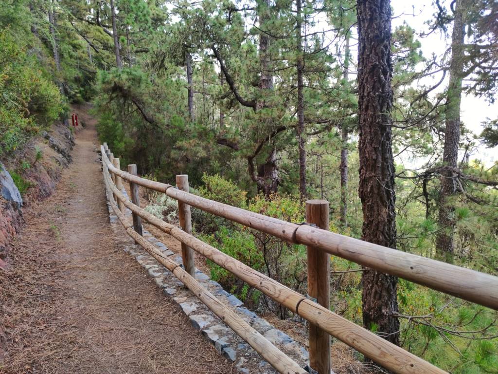 Un camino que discurre por un espectacular bosque de pinos, y que va alcanzando las partes más altas según nos vamos acercando al Valle de La Orotava. Un sendero que bordea numerosas cabeceras de barrancos y que nos proporciona increíbles vistas de toda esta masa forestal. El descenso hasta la Caldera desde la parte más alta, se hace por un sendero bien acondicionado con fuertes pendientes y que nos lleva hasta la Casa del Agua, un lugar donde antiguamente llegaba el agua canalizada procedente de varios manantiales y ejemplo de las infraestructuras hidráulicas de la zona, que tuvieron gran importancia en el pasado. Desde allí hasta la choza de Pedro Gil, nos espera un agradable paseo por una pista forestal que nos lleva hasta la Caldera, o como en nuestro caso, si nos desviamos antes, podemos bajar hasta el barrio de Aguamansa donde damos por terminada esta espectacular etapa del GR 131.