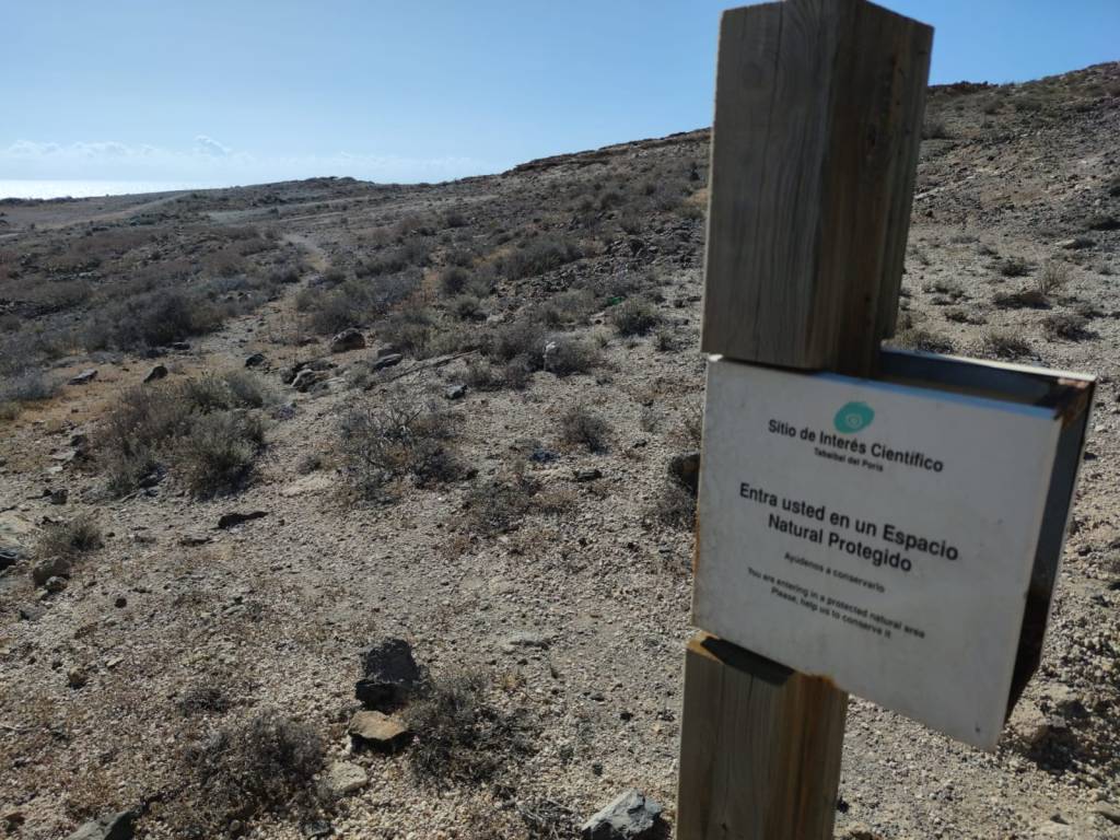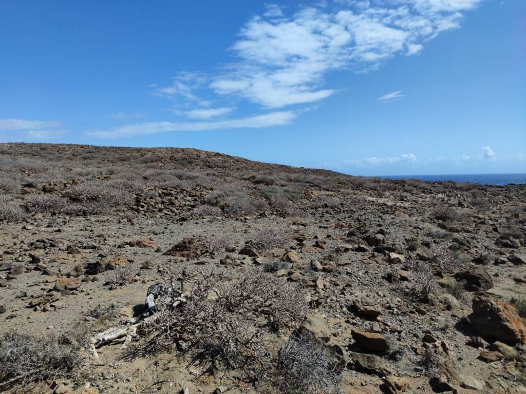 Un paisaje como he comentado casi desértico y donde solo habitan las tabaibas. Tras dejar atrás Las Eras ya tenemos en mente llegar al Poris, todavía quedan unos cuantos kilómetros por senderos y donde tendremos que atravesar el Espacio Natural Protegido del Tabaibal del Poris, por un sendero perfectamente delimitado y donde podremos observar tabaibas de gran porte, muchas de ellas peinadas por el viento y tumbadas a ras del suelo donde estas especies vegetales se han adaptado al constante soplar del viento.