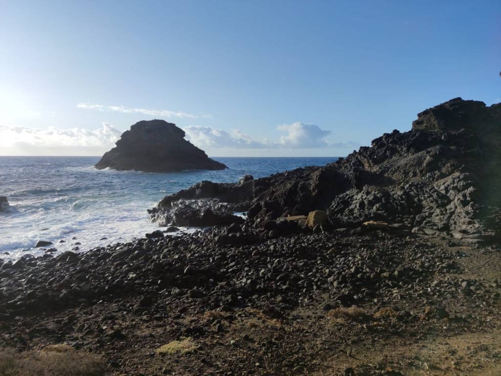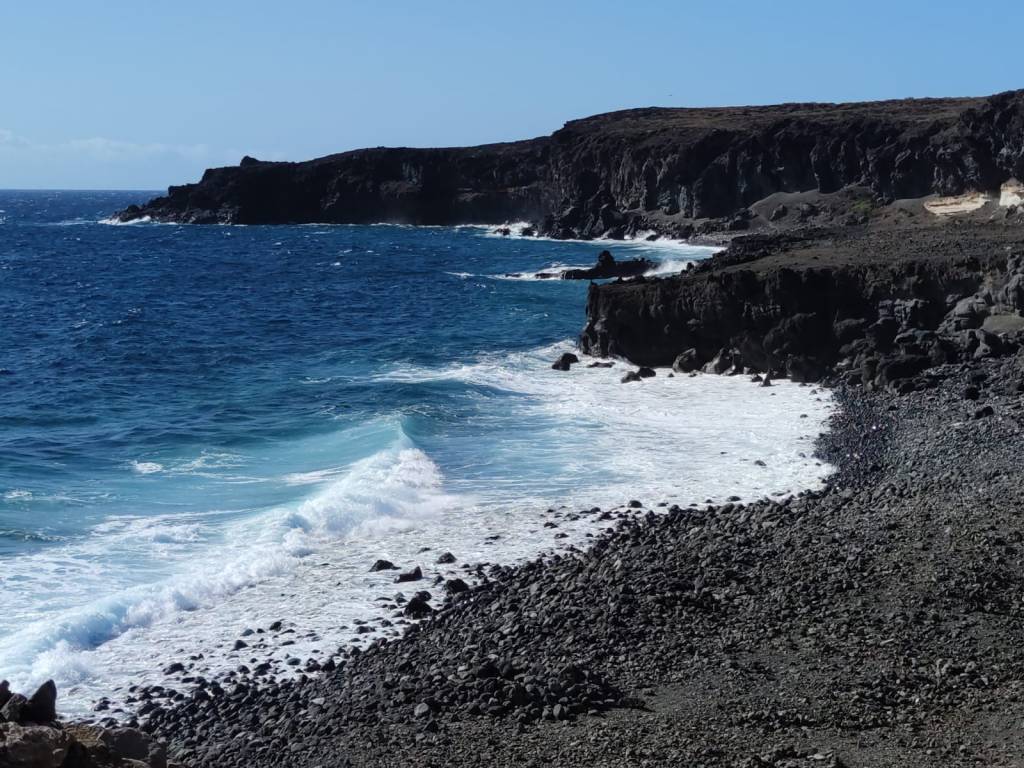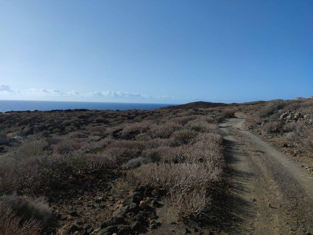 Desde el comienzo de la etapa, ponemos rumbo a Las Eras, a lo lejos se divisa este pequeño núcleo costero, conocido por mucha gente por sus fondos marinos donde muchos buceadores van a sumergirse. El camino hasta allí es un sendero por donde cruzaremos numerosos barrancos, todos ellos de no mucha profundidad y que van a dar al mar, donde se forman pequeñas calas y playas de callaos con acantilados de basalto negro esculpidos por la fuerza del mar.