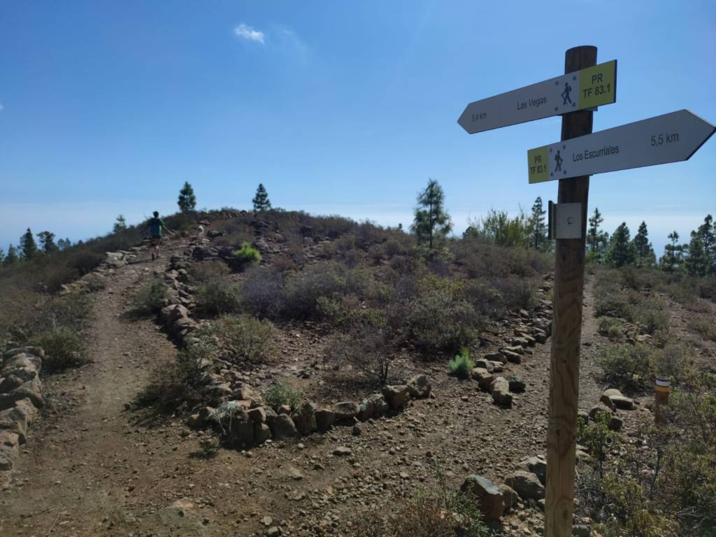 Saliendo desde la parte alta de la Cruz de Tea nos adentramos en un espectacular paisaje de pinos dentro de la Corona Forestal que nos llevará a realizar un recorrido circular por una zona, que he de decir, me ha resultado bastante sorprendente en cuanto paisaje y sobre todo etnografía de la zona. Comenzamos por lo que se conoce como Camino de La Corredera, una pequeña variante que discurre por un antiguo camino que enlaza el PR-TF 83 Altos de Granadilla con el PR-TF 83.1 Las Vegas – Los Escurriales en el Camino de Los Cardos. Se establece así conexión entre los caseríos de Las Vegas y Cruz de Tea en las medianías de Granadilla de Abona.