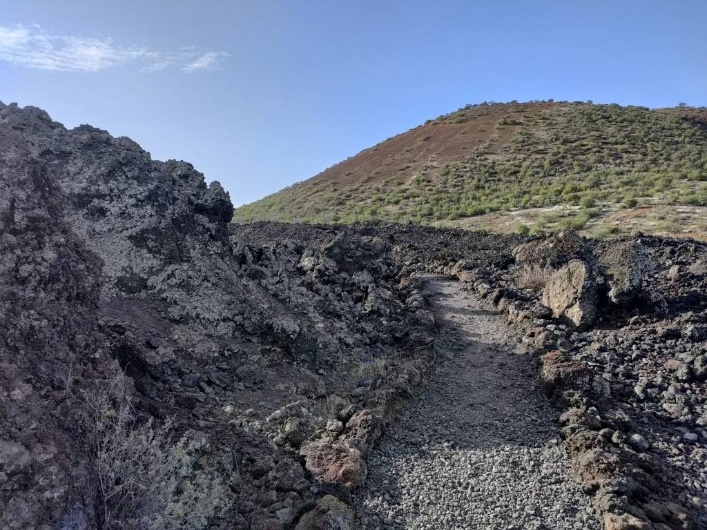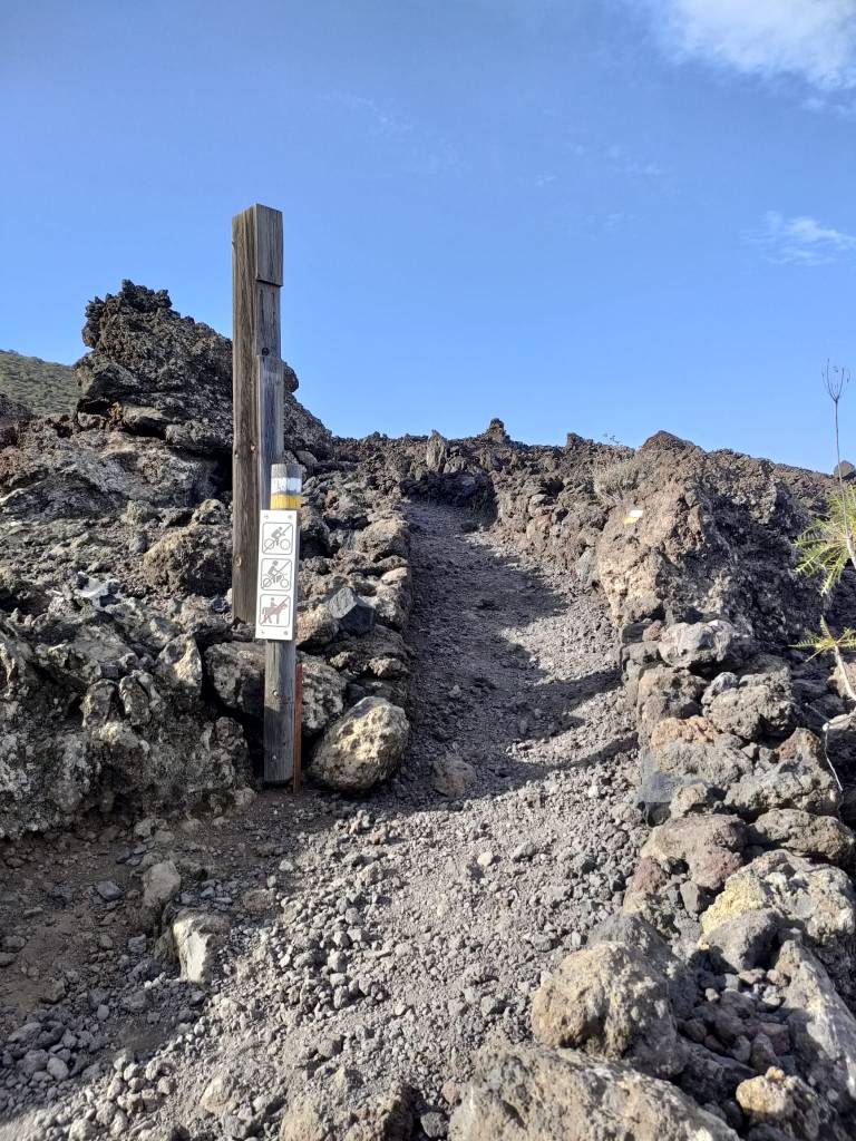 Bordear esta montaña es bastante fácil, porque el sendero es homologado y la verdad es que está bastante bien conservado, por lo que transitar por este lugar es disfrutar plenamente de todas las vistas que se nos brinda. Coladas de lava que en su día vertebraron esta zona y que están salpicadas de bosques de pinos a las faldas de la Corona Forestal.