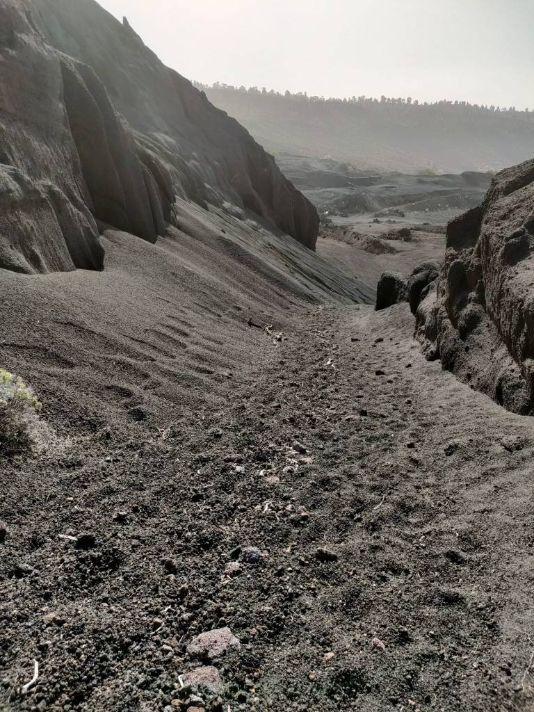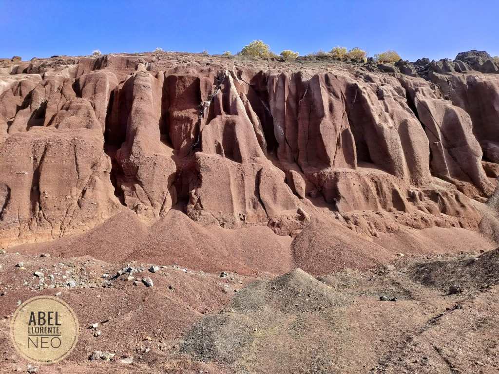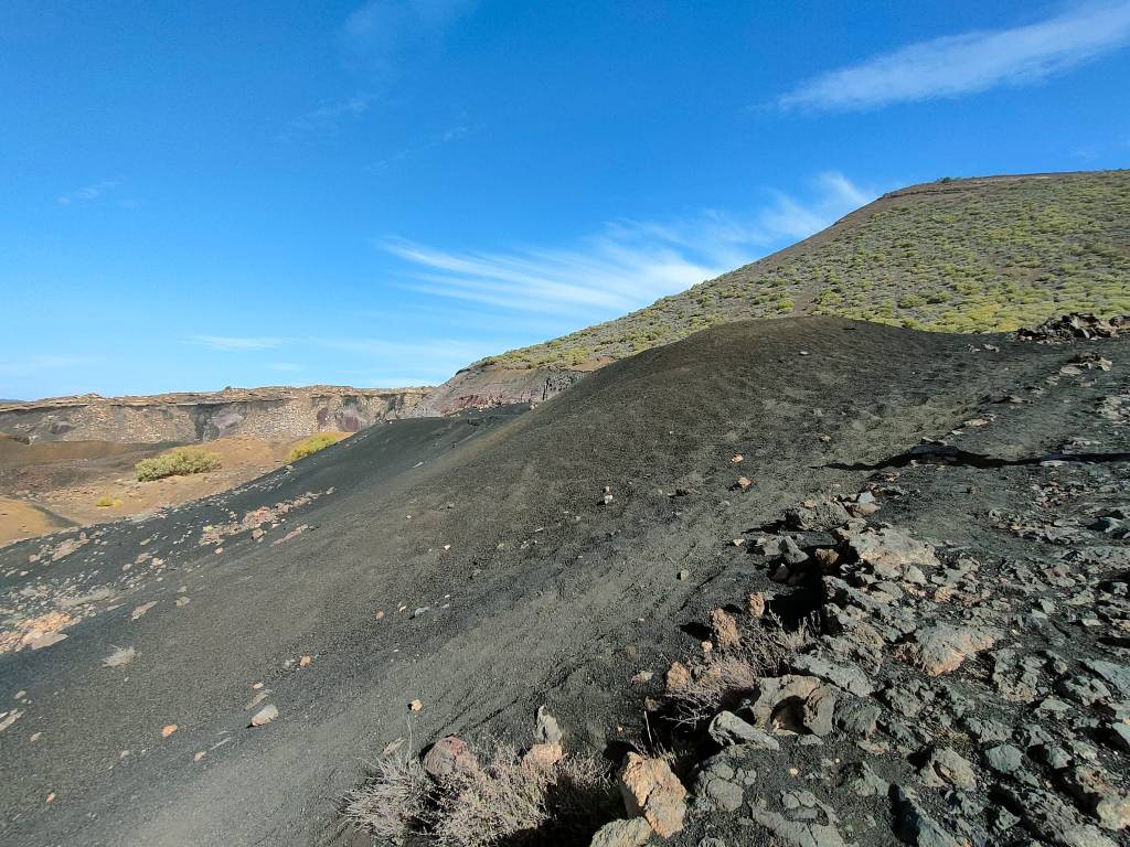 ATENCIÓN: En este punto de la ruta, nosotros consideramos que era interesante bajar a la cantera para observar los diferentes colores y materiales que se pueden observar, fruto de la extracción continuada durante años. Para retomar el sendero y salir de la cantera hay que subir, según el track que publico, unos 50m por una ladera de picón que para ciertas personas puede resultar bastante difícil. Si no se quiere asumir este riesgo, la alternativa es volver sobre nuestros pasos y buscar un pequeño sendero que discurre por la parte alta de la cantera y que vuelve a unirse al sendero de nuestra ruta.