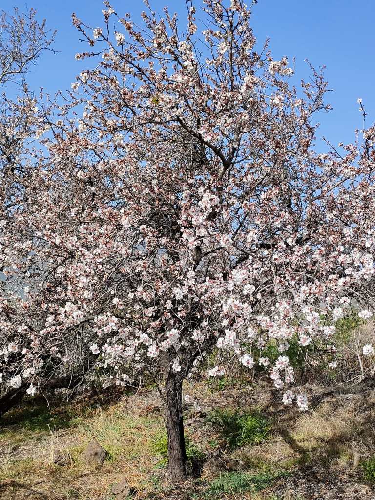 Nuestra ruta parte del Valle de Arriba, siguiendo el sendero en ascenso de los almendreros en flor. Un recorrido por un camino tradicional, delimitado por muros de piedra y donde veremos higueras, los primeros almendreros, además de escobones, retamas, codesos, vinagreras, bejeques, y como no multitud de cerrajas que en unos días, sus flores amarillas salpicaran de color la zona.