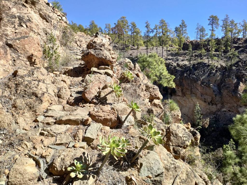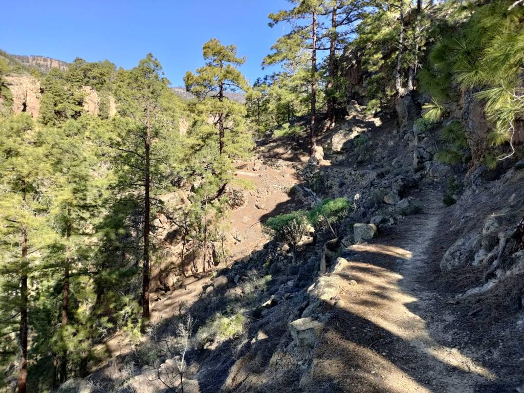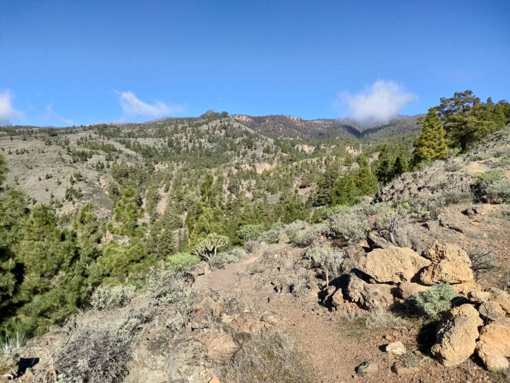 Un sendero exigente por su continua e ininterrumpida subida, por un sendero que, aunque esta bien señalizado y casi no hay problemas de perdida, el terreno por el que discurre con muchas piedras sueltas y muy empedrado hace el avance un poco más complicado de lo habitual. Pero sin duda, un recorrido para disfrutar de la tranquilidad y del gusto de caminar entre un increíble bosque de pinos canarios por la parte alta de la Isla.