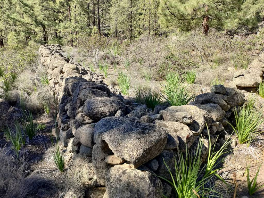Una vez arriba, volvemos a tomar nuestro primer sendero por el que íbamos ascendiendo para continuar la marcha, siempre entre un bosque de pinos, hasta llegar a las antiguas casas de El Contador. A partir de esta zona el ascenso se suaviza un poco, señal de que estamos llegando al área recreativa. Lugar por donde transitaremos a través de antiguos campos de cultivo, que hoy en día solamente son reconocibles por sus muros de piedra.