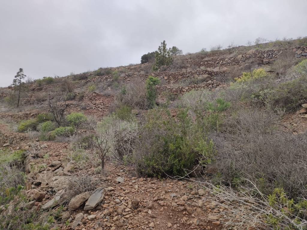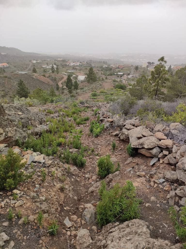 A partir de este punto, comenzamos un ligero sendero de bajada entre huertas y bancales, los que están mas cerca de las casas, todavía algunos están cultivados, y que nos permitirá volver de nuevo hasta Vera de Erques, lugar de salida de esta ruta.