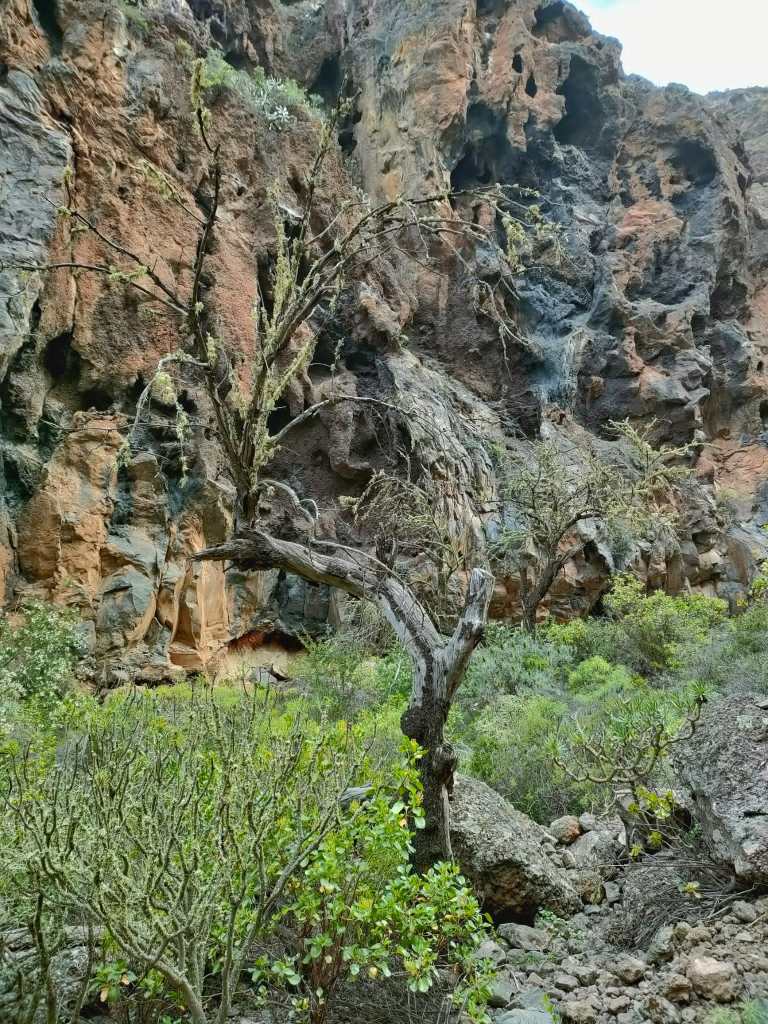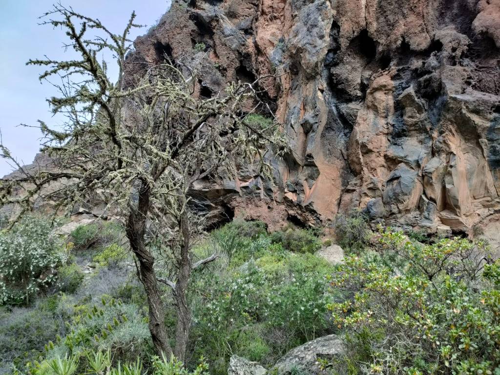 Nada mas salir del núcleo de población de Vera de Erques, a pocos metros nos acercamos al filo de este increíble barranco, donde desde un mirador podemos apreciar la altura y el «tajo» que es este lugar. Cuesta mirar el fondo por su altura a izquierda y derecha solo se puede observar la profundidad de este peculiar barranco. Destacan por tanto, sus paredones verticales y elevados en puntos concretos de su tramo medio, que es la parte que vamos a recorrer.