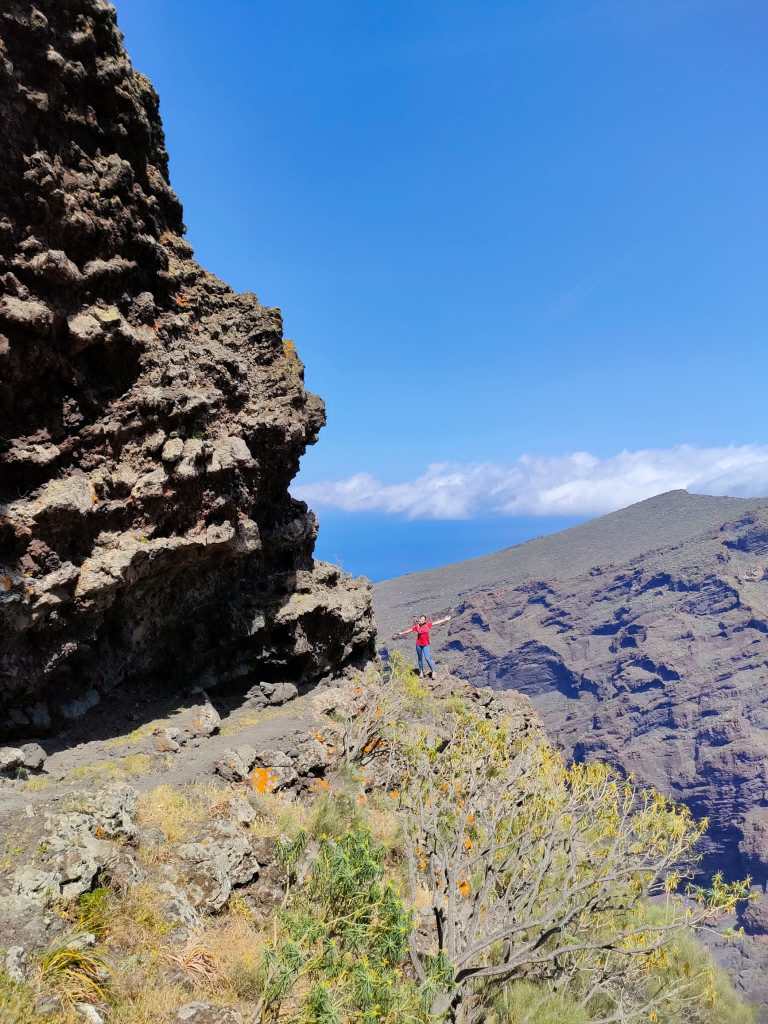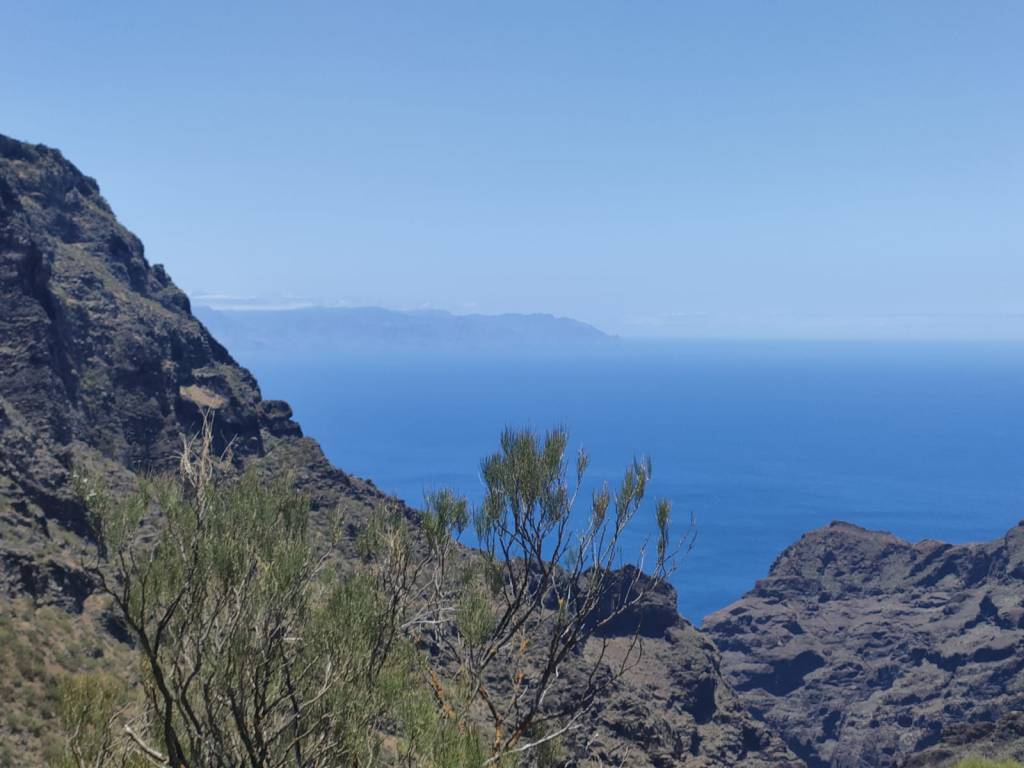 Y es que aunque la subida es bastante fuerte, tenemos que levantar la vista a medida que vamos avanzando, para observar la inmensidad del Océano Atlántico y la silueta de la isla de La Gomera en la lejanía, al igual que la Playa de Juan López. Unas vistas sin duda alguna que hacen que merezca la pena el esfuerzo.