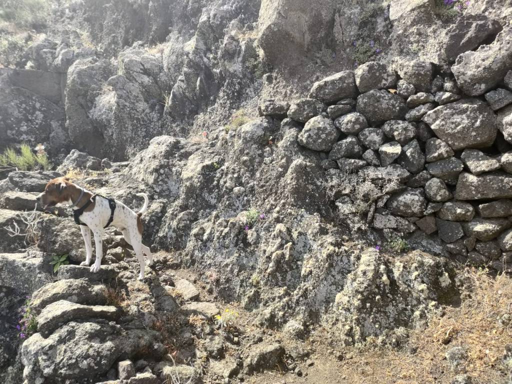 Después de un interminable sendero con increíbles vistas del cauce del barranco, empezaremos a ascender paulatinamente por el Andén de Acá, lo que se conoce como «La calzada», para luego iniciar una espectacular subida que zigzaguea, buscando el paso de la montaña, mediante una senda estrecha con firme empedrado y fuerte desnivel, al mismo tiempo que bastante expuesta. Una subida que es toda una obra de arte, por como está construido el camino y que solamente pensar que antaño por este lugar, transitaban yuntas de bestias cargadas, da vértigo el pensarlo.