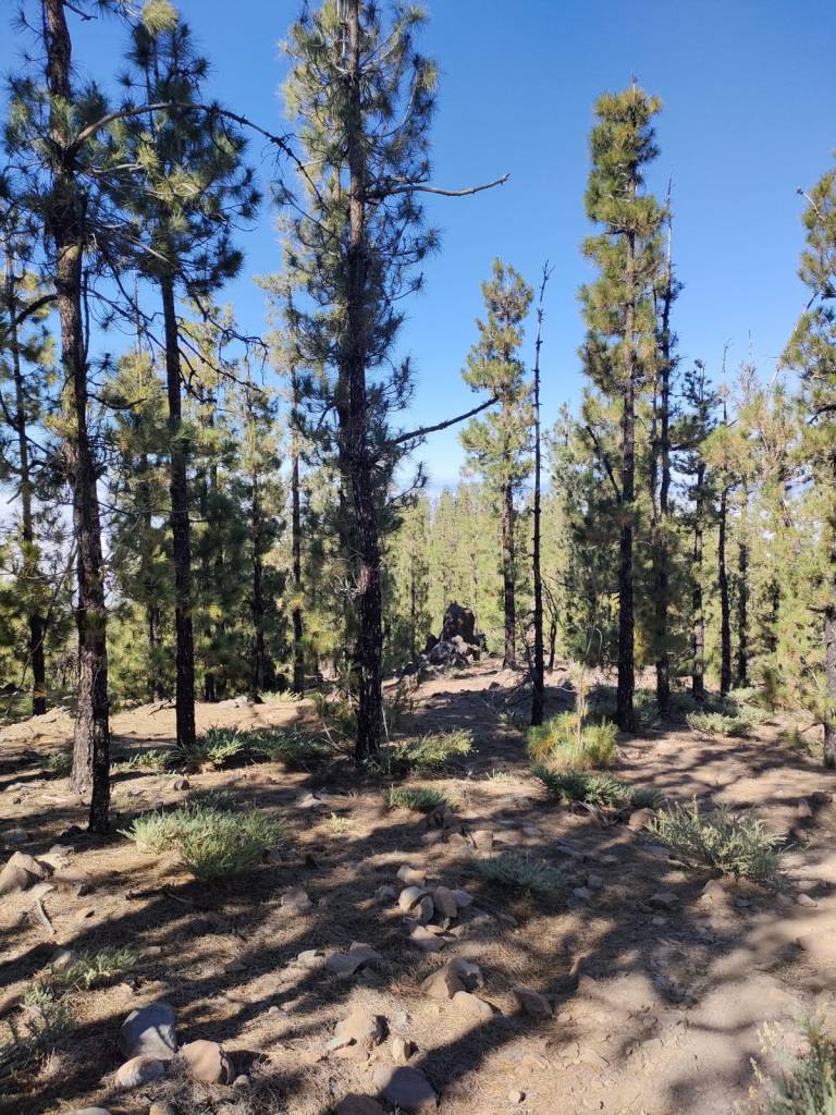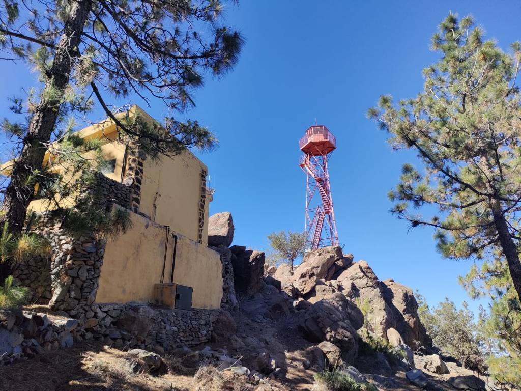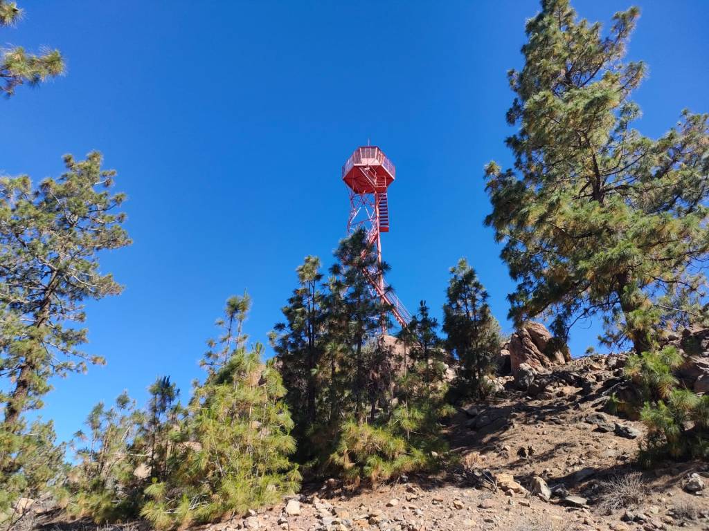 Siguiendo el camino nos adentramos en la vertiente oeste, donde predominan las grandes extensiones de pino canario, y que nos llevara hasta la torre de vigilancia, que vela porque no se produzca ningún incendio en épocas estivales principalmente.
