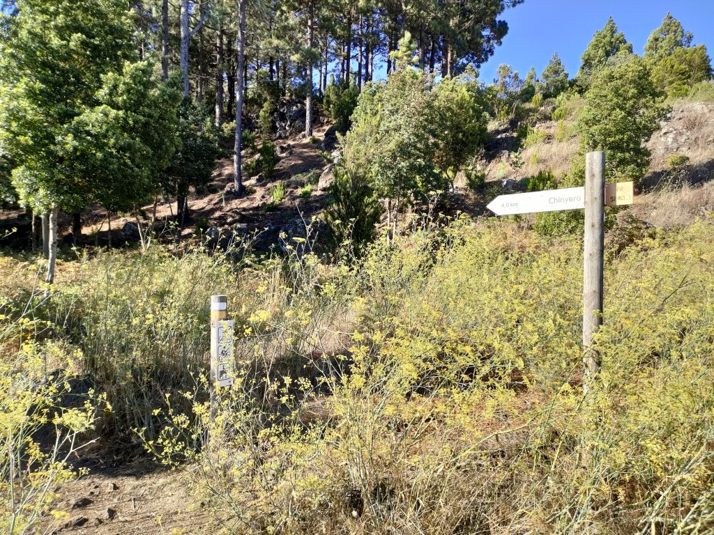 Saliendo desde la zona recreativa de San José de los Llanos empezamos a caminar por el sendero homologado que nos llevara hasta el Chinyero, por un bosque de pinos especialmente frondoso.