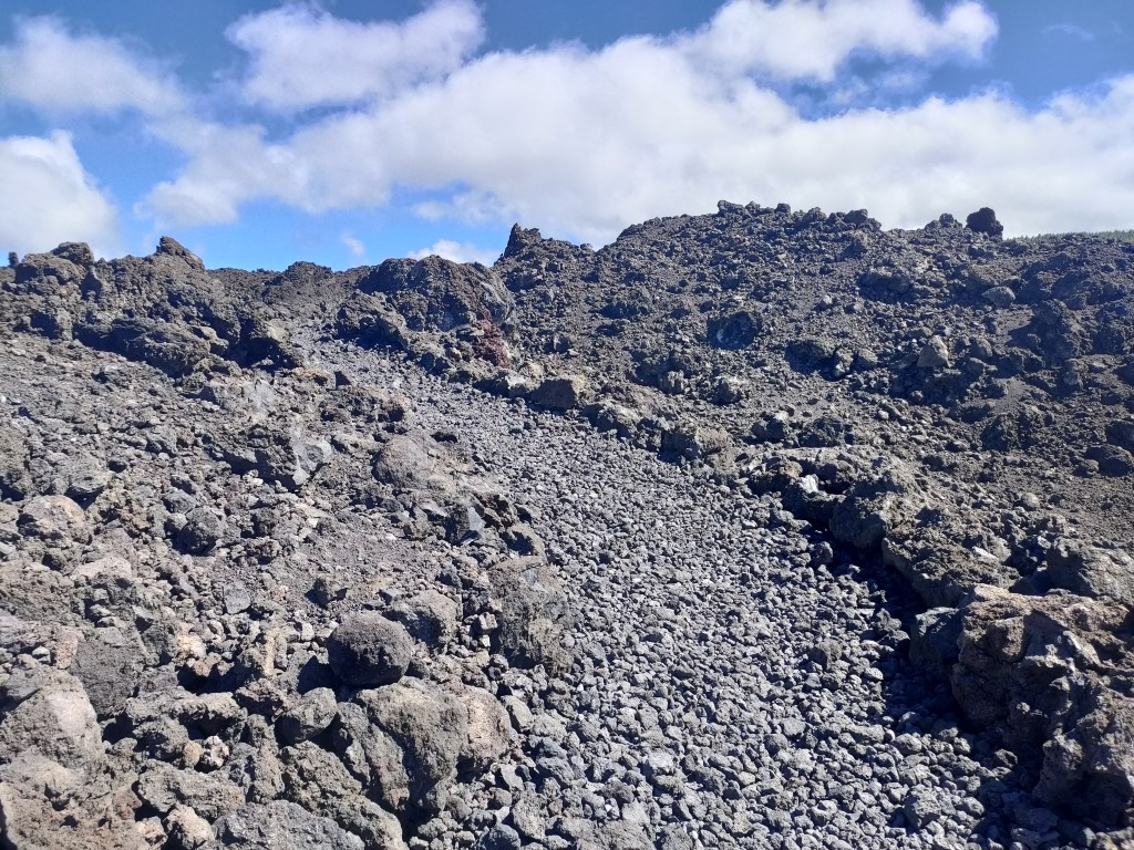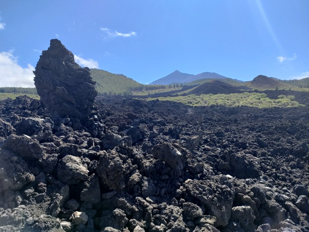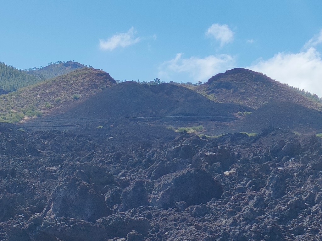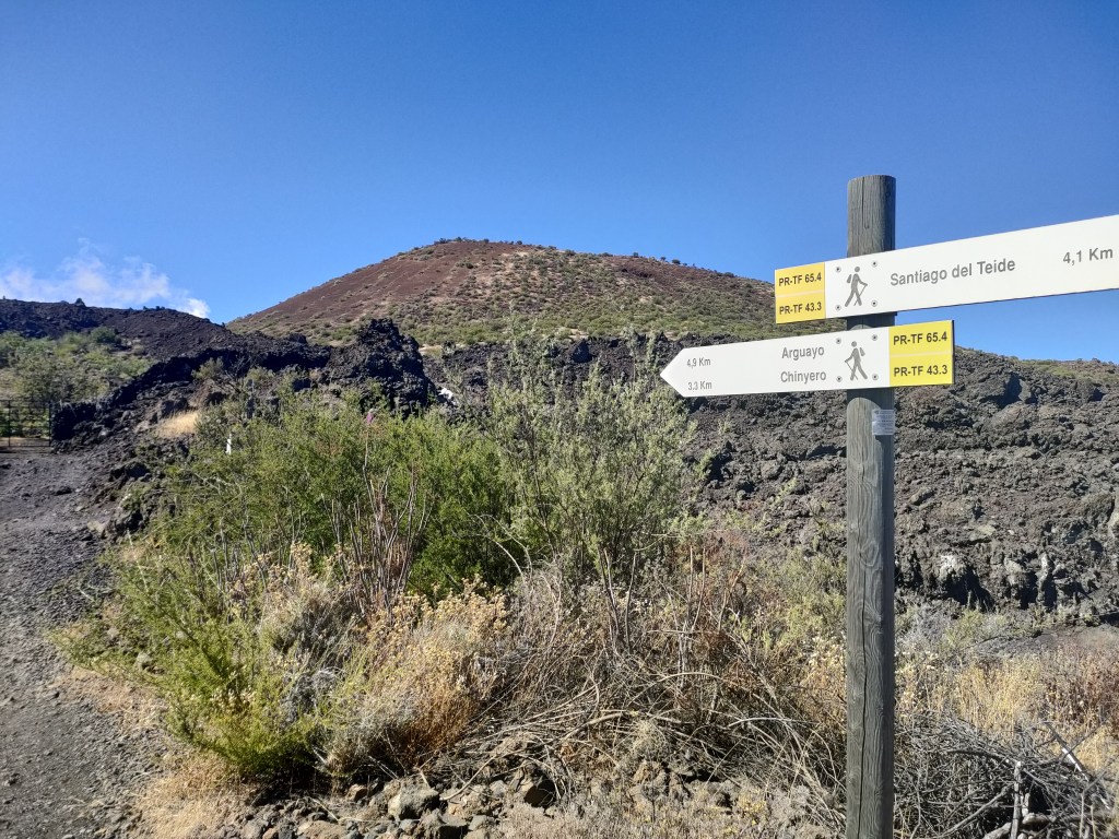 Casi sin darnos cuentas nos adentramos a bordear la Montaña Bilma, por un sendero entre un malpaís de de lava proveniente de las erupciones de los diferentes volcanes que componen la dorsal de Abeque. El paisaje se vuelve de tonalidades negras, las lavas petrificadas forman un paisaje completamente diferente al que hemos dejado atrás. Por un sendero perfectamente delimitado podemos disfrutar de este espectacular lugar de donde tenemos una vista fantástica de todos estos volcanes e incluso de El Teide y Pico Viejo.