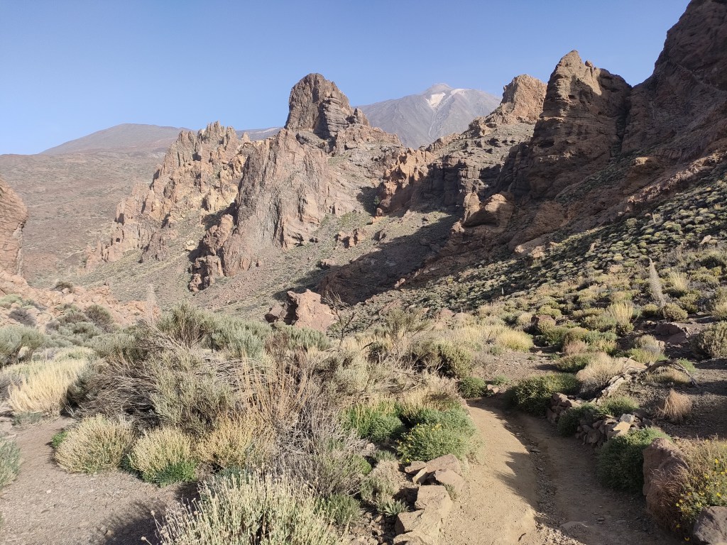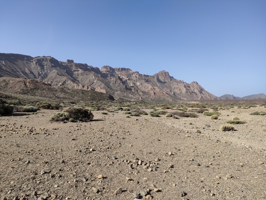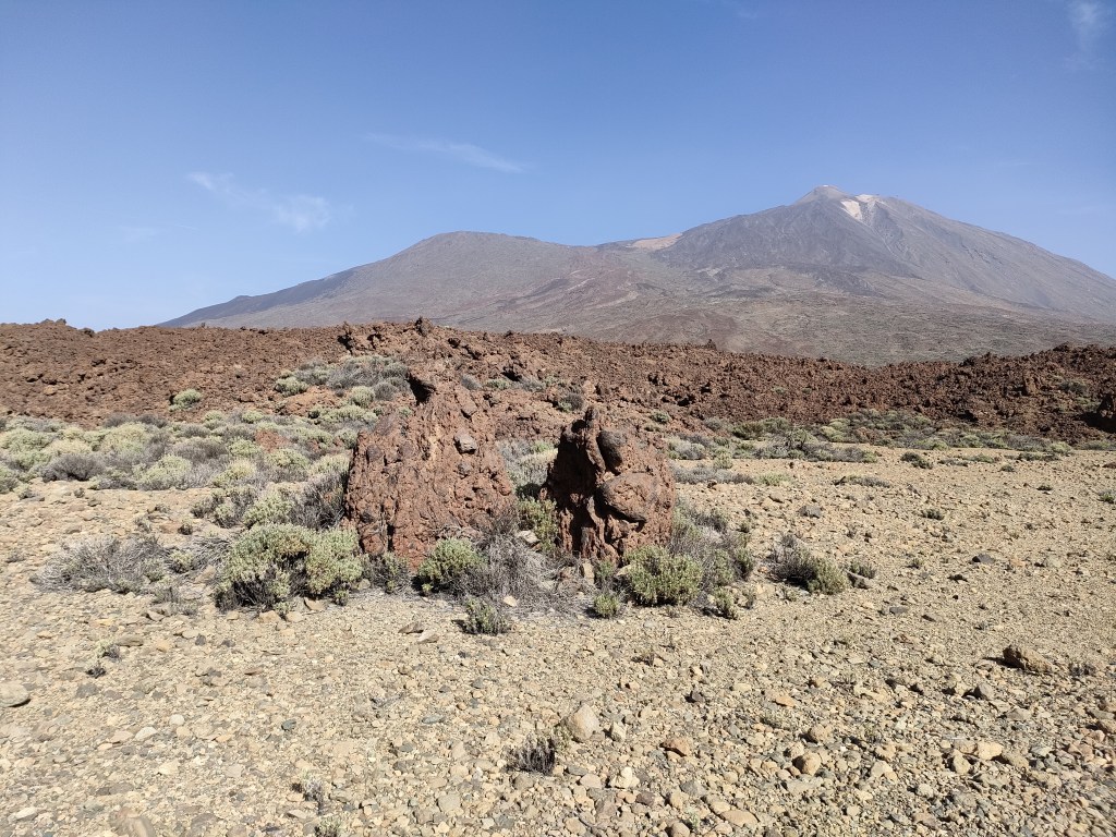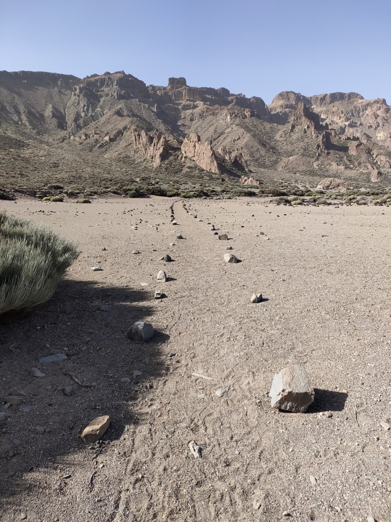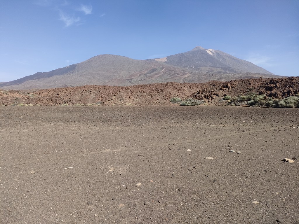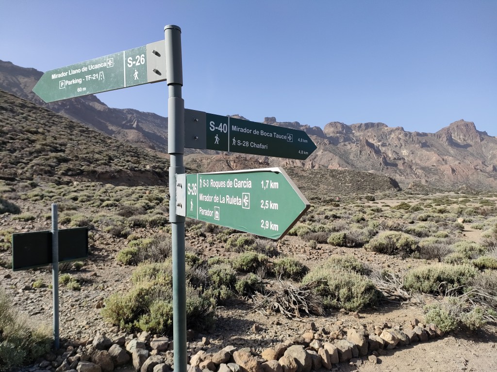 Iremos dando toda la vuelta hasta empatar con el sendero del Llano de Ucanca (Sendero 26) con un recorrido casi horizontal, donde recorremos parte de esta llanura siempre con los escarpes de Ucanca, Pico Viejo y El Teide presentes, hasta llegar al mirador y que nos ofrece al caminante una visión incomparable.