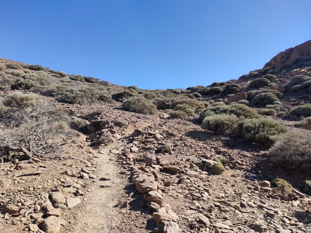 Pero en general la ruta se encuentra bastante bien señalizada, y no presenta dificultades de orientación, máxime cuando durante la mayor parte de ella, tenemos a la vista nuestro objetivo. El desnivel es de 450 metros de subida, y parte de este recorrido iremos por el limite del Parque Nacional de El Teide.