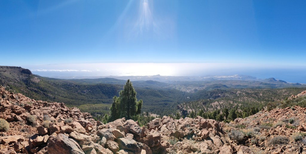 El borde más al sur del Sombrero, disfrutamos de unas vistas del sur de la isla que a nadie dejará indiferente. Desde Vilaflor hasta el mar infinito resaltando Montañ Roja del Medano, puerto de Grandilla, Los Cristianos, Alcala… y un sinfin de lugares fácilmente de identificar.
