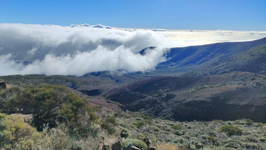 Hay que tener en cuenta que durante este descenso bajamos una considerable altitud y donde podemos observar distintos tipos de vegetación. Desde la retama, codesos y rosalillo de cumbre, pasando por el pinar y hasta un monteverde donde podemos apreciar ligeros trazos de laurisilva y algún que otro madroño entre otras especies.