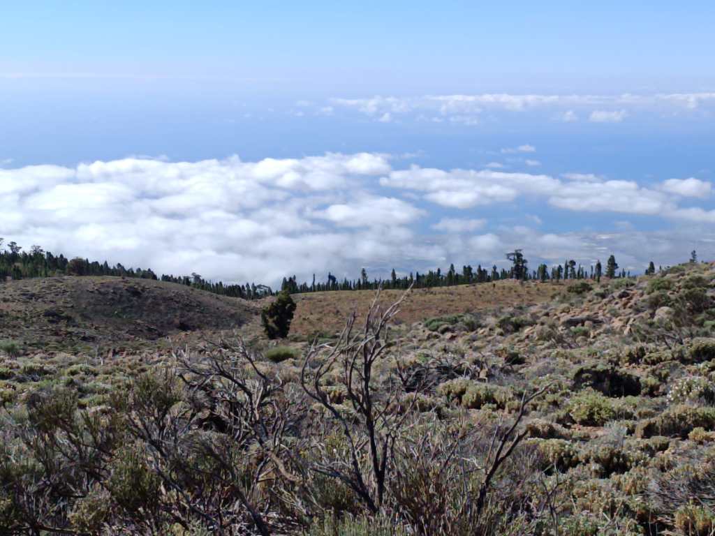 Pero no olvidemos que no solamente es mirar a la derecha y ver el fabuloso Parque. Mirar a la izquierda, es mirar al sur, donde vemos la costa de Tenerife desde El Porís de Abona, hasta Los Abrigos, así como las cabeceras del Barranco de las Hiedras y Barranco de Madre del Agua. Un increíble pinar llega casi hasta los límites del Parque, donde todavía quedan restos del último incendio de la zona, pero que la naturaleza se ha encargado de ir recuperando poco a poco.