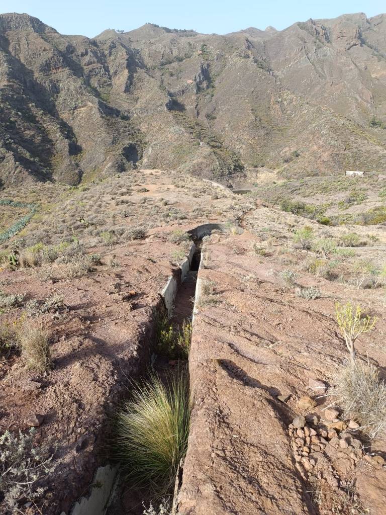 Casi sin darnos cuenta llegamos a una zona donde encontramos un tomadero de agua y una antigua infraestructura, donde antiguamente se aprovechaba el agua que se recogía en este barranco para llevarla a la presa de Tahodio.