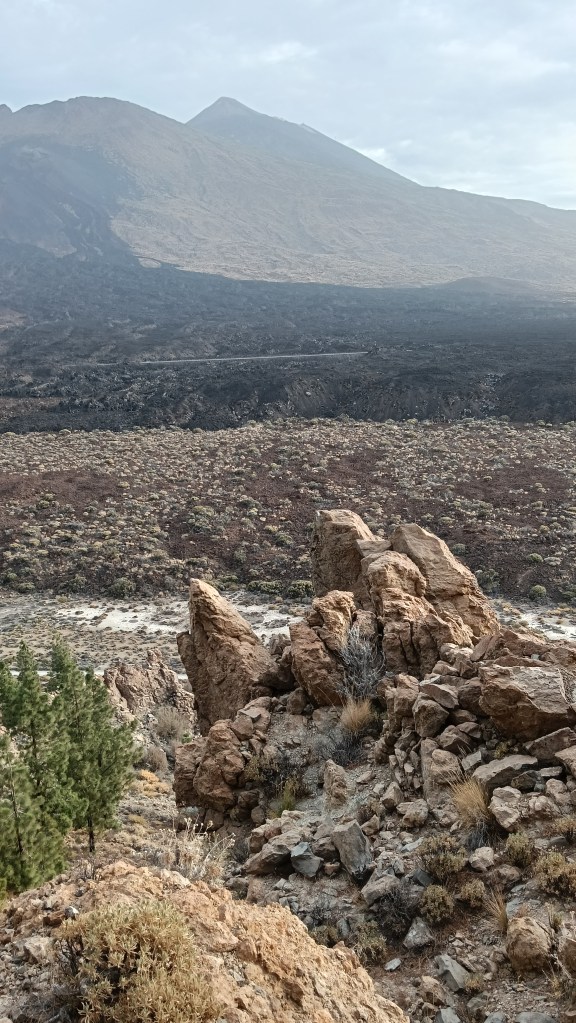 Para recorrer este camino, que mejor que empezar desde la cumbre donde las vistas del pico de El Teide y Pico Viejo nos dan la mejor de las salidas en nuestro caminar, con unas increíbles vistas panorámicas. Desde el Mirador de las narices de El Teide, cruzamos la carretera para tomar el sendero que nos conducirá, por un mar de lavas, hasta la Montaña del Cedro. Un sendero enmarcado dentro de la red de senderos del Parque, que nos conduce por las antiguas lavas, por un terrero de malpaís, pegados al Roque del Cedro y la Montaña del Cedro.