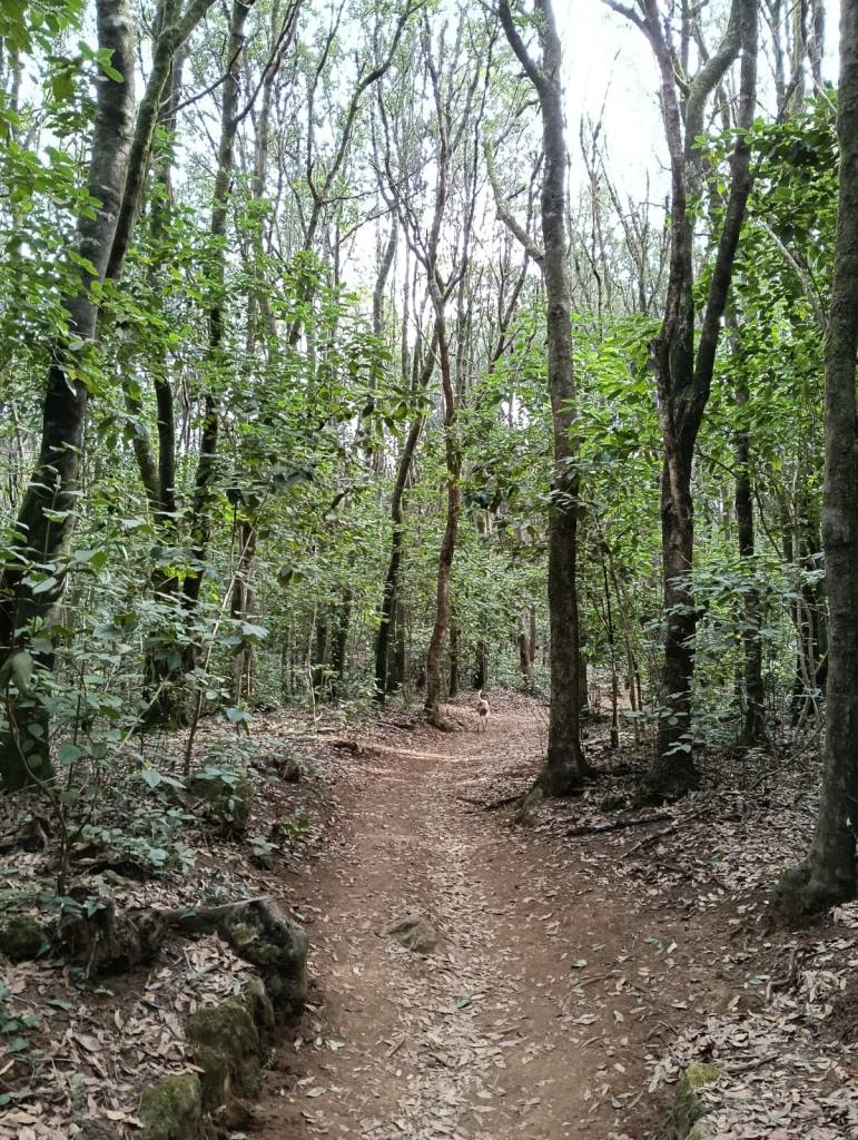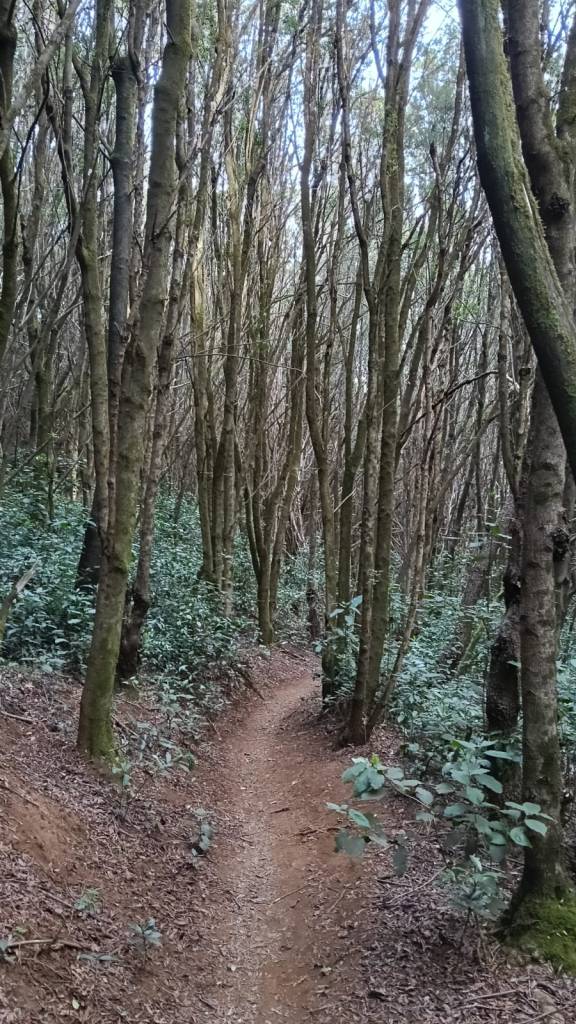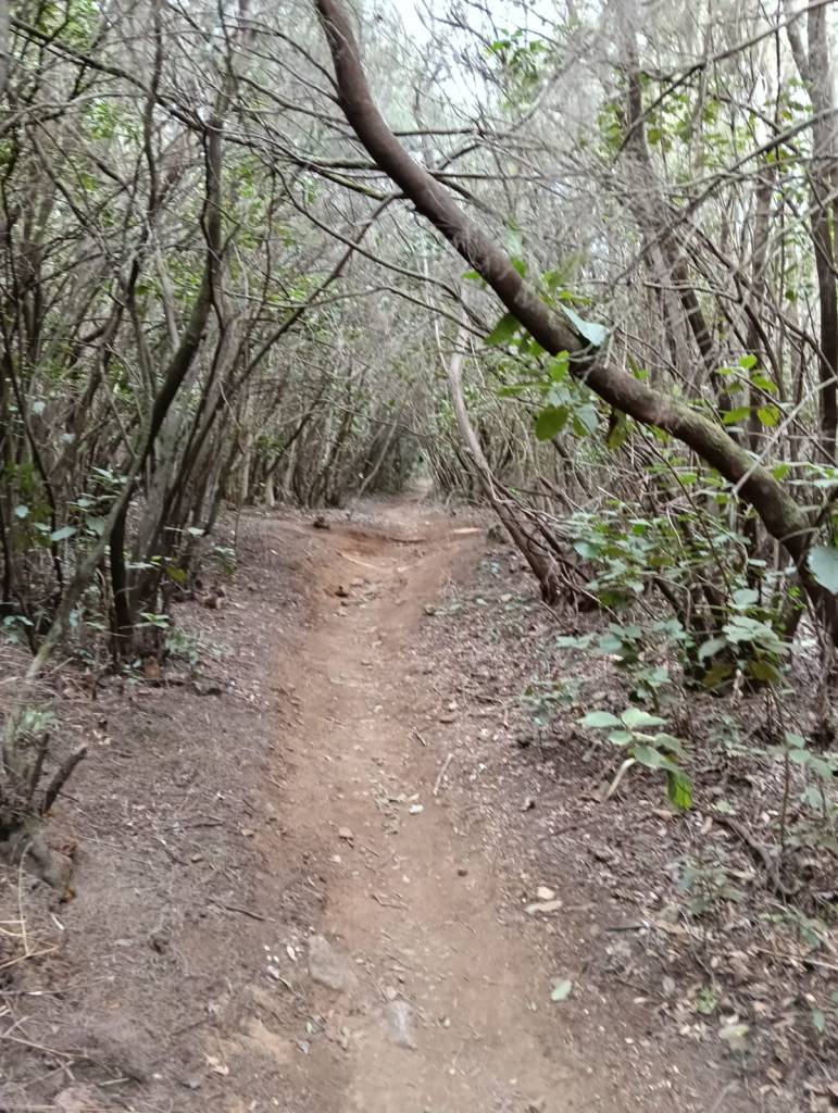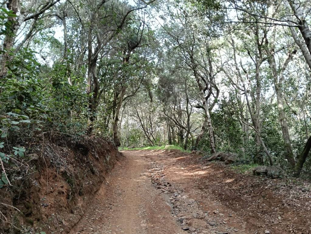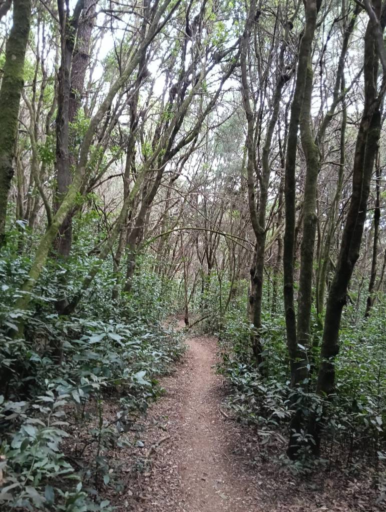 Justo en el límite entre El Rosario y Tacoronte, comenzamos a caminar por la pista La Herradura. Es un camino que nos invita a sumergirnos en un bosque de laurisilva, un refugio de lo que alguna vez fue la exuberante vegetación de la Isla. Pronto dejamos la pista para adentrarnos en un sendero que nos conduce a través de la laurisilva, aún más espectacular, hasta el cruce de caminos de la Montaña El Haya. Este sendero es verdaderamente fascinante; aunque la falta de lluvias puede hacer que se vea un poco distinto, nunca deja de tener esa magia especial que caracteriza a estos bosques.
